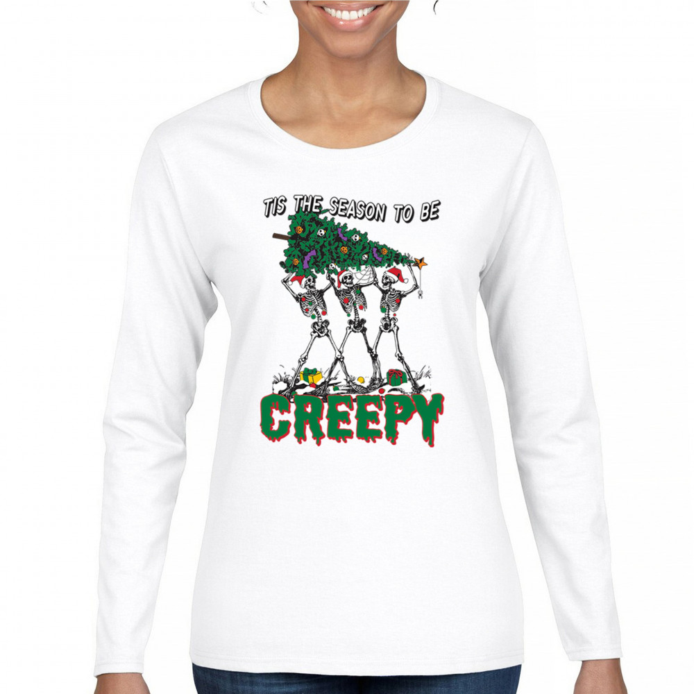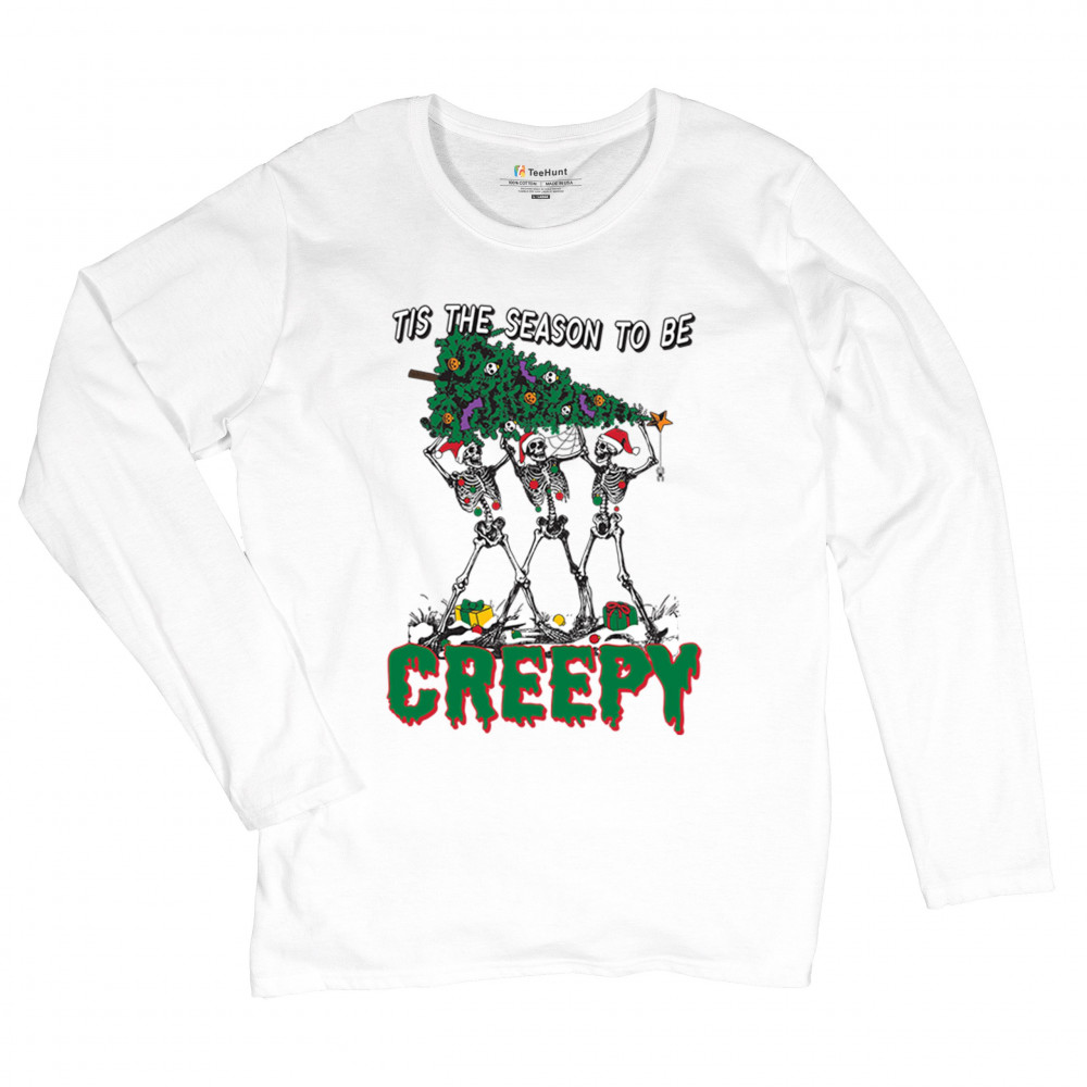 Spooky meets festive with "Tis the Season to Be Creepy" skeleton Christmas design. Perfect for holiday parties, Secret Santa, and unique gifts.