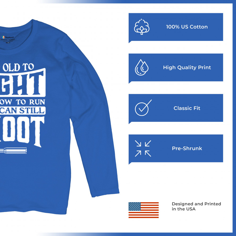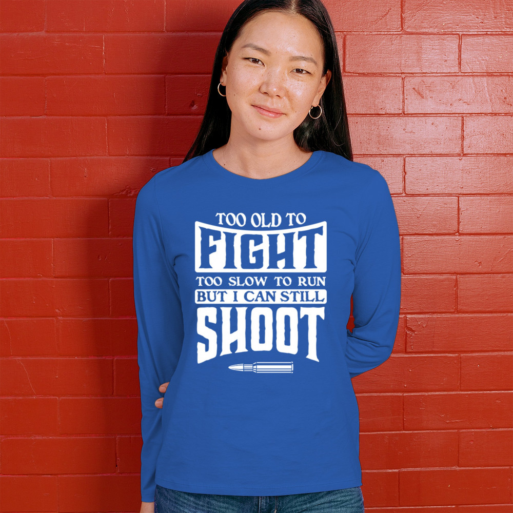 TOO SLOW TO RUN BUT CAN STILL SHOOT women's long sleeve t-shirt 2nd amendment royal blue