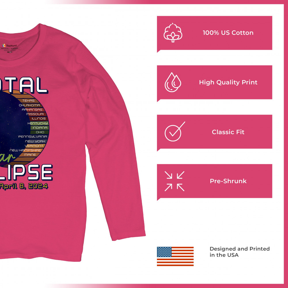 Embrace the celestial spectacle with our solar eclipse graphic design. Capturing the mesmerizing dance between sun and moon, this shirt is a must for astronomy lovers. Wear it proudly and celebrate the wonder of a total solar eclipse!