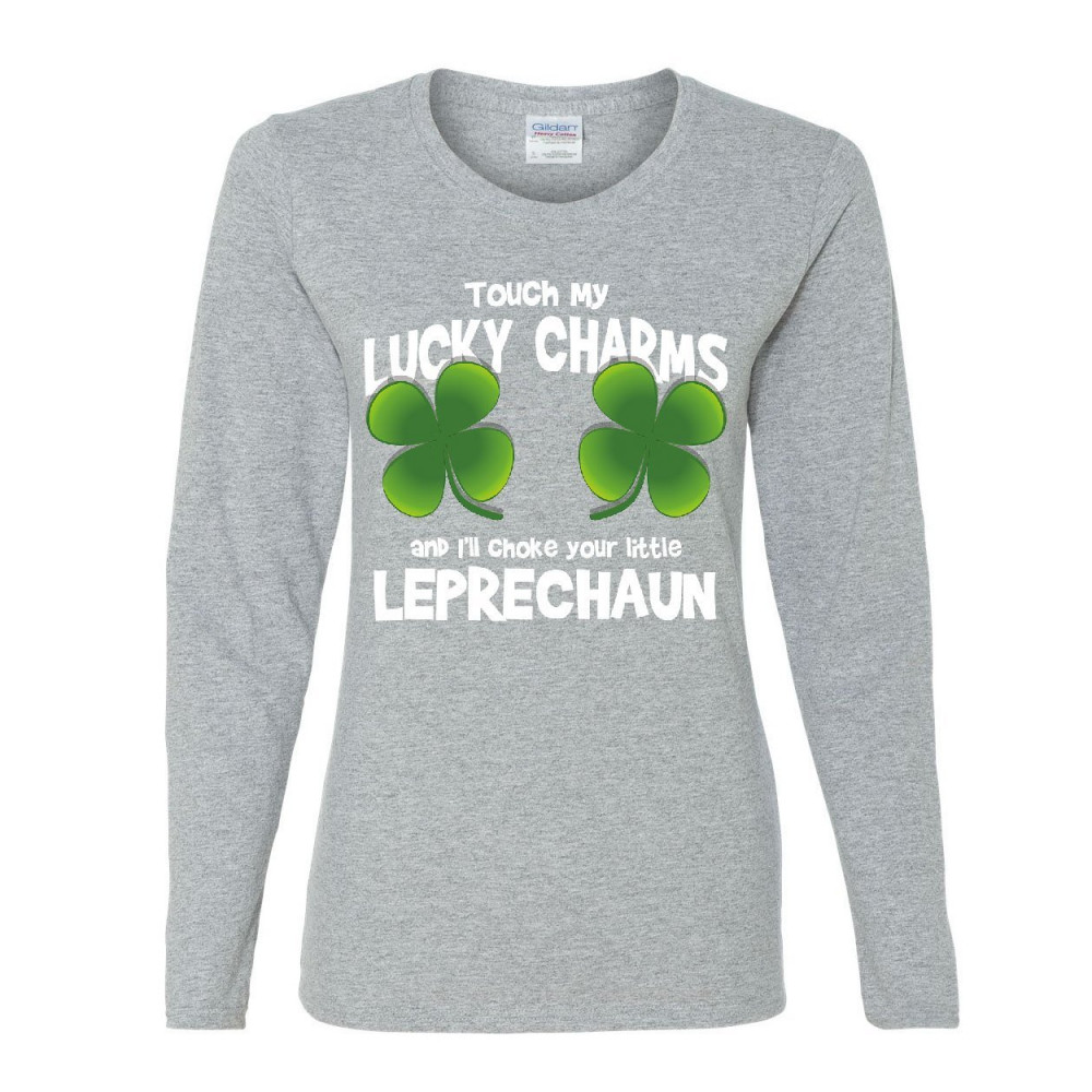 TOUCH MY LUCKY CHARMS women's long sleeve tee irish shamrock st. patrick's day gray