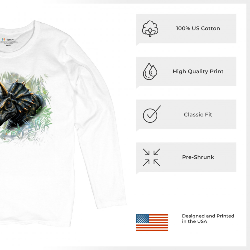 Charge into the past with this vivid triceratops design. Featuring a hyper-detailed horned dinosaur surrounded by jungle leaves, this design is perfect for dino lovers, fossil enthusiasts, and anyone fascinated by prehistoric beasts. Great for Jurassic parties, safari parks, or museum visits, it brings ancient strength to life.