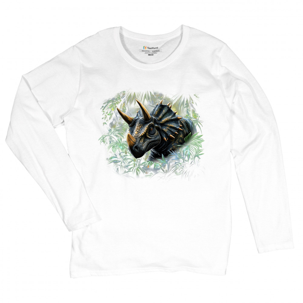 Realistic triceratops in jungle setting. Great for dino fans, fossil lovers, Jurassic exhibits, and prehistoric outdoor adventures.