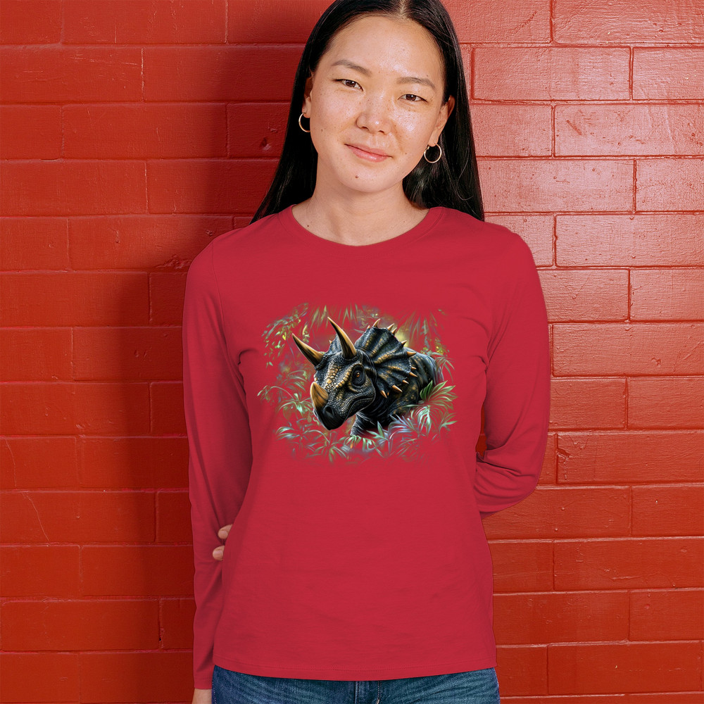 Charge into the past with this vivid triceratops design. Featuring a hyper-detailed horned dinosaur surrounded by jungle leaves, this design is perfect for dino lovers, fossil enthusiasts, and anyone fascinated by prehistoric beasts. Great for Jurassic parties, safari parks, or museum visits, it brings ancient strength to life.