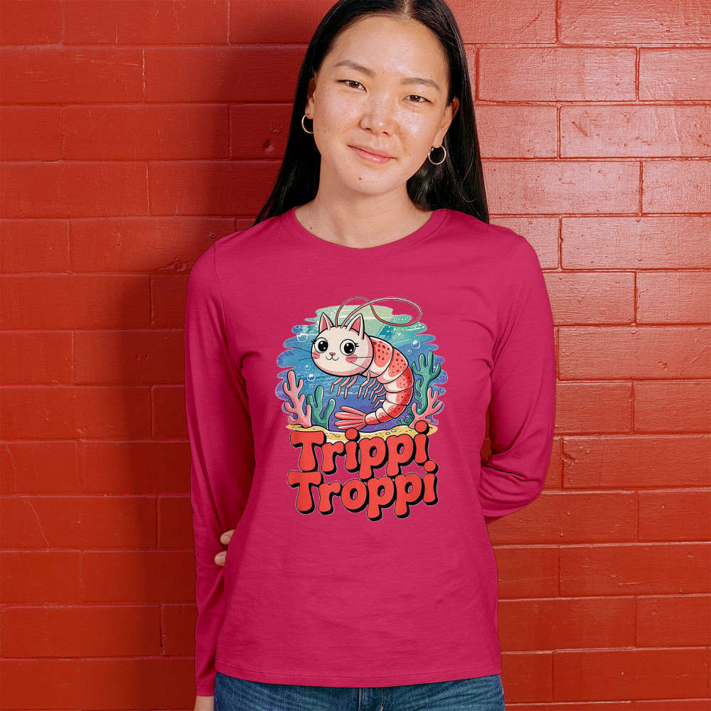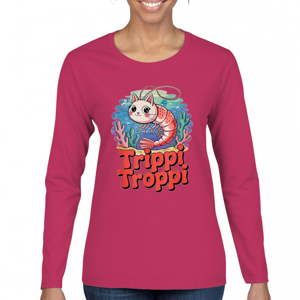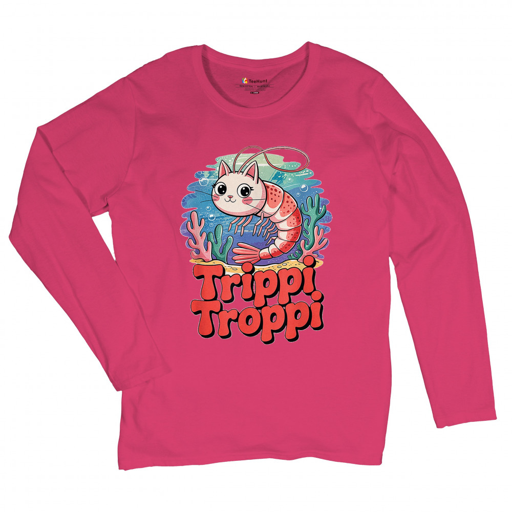 Dive deep into absurdity with Trippi Troppi—a surreal shrimp-cat fusion straight out of Italian Brainrot territory. This design captures cursed animal chaos, weirdcore visuals, TikTok meme culture, and underwater fever dream aesthetics. Made for Gen Z humor addicts, ocean meme fans, and ironic fashion lovers alike.