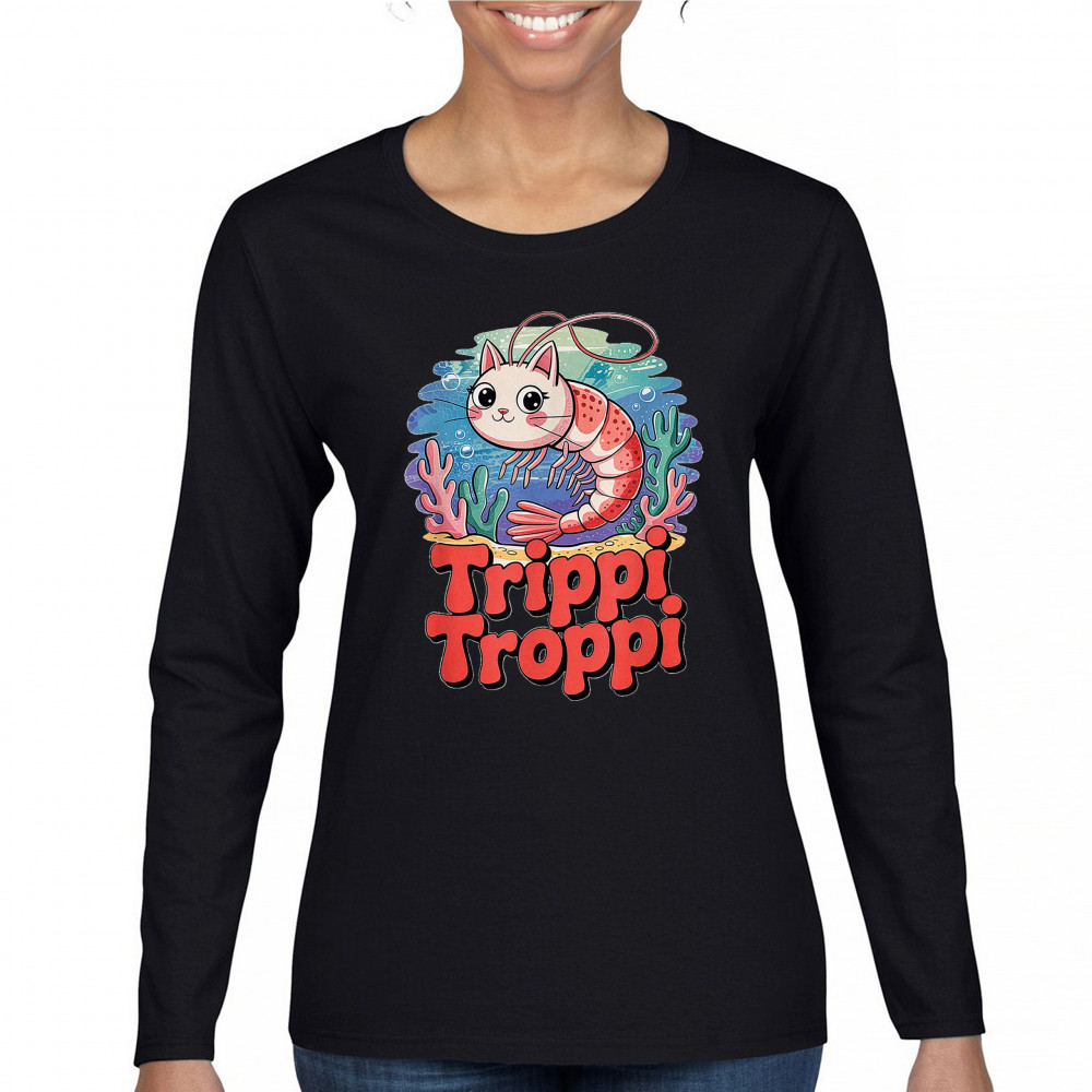Dive deep into absurdity with Trippi Troppi—a surreal shrimp-cat fusion straight out of Italian Brainrot territory. This design captures cursed animal chaos, weirdcore visuals, TikTok meme culture, and underwater fever dream aesthetics. Made for Gen Z humor addicts, ocean meme fans, and ironic fashion lovers alike.