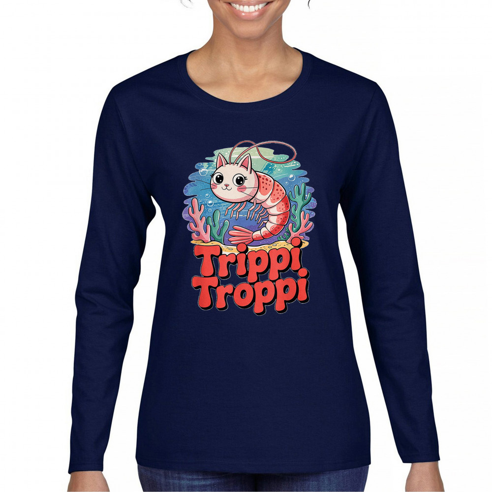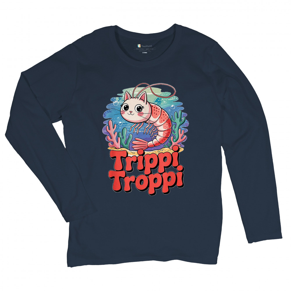 Dive deep into absurdity with Trippi Troppi—a surreal shrimp-cat fusion straight out of Italian Brainrot territory. This design captures cursed animal chaos, weirdcore visuals, TikTok meme culture, and underwater fever dream aesthetics. Made for Gen Z humor addicts, ocean meme fans, and ironic fashion lovers alike.
