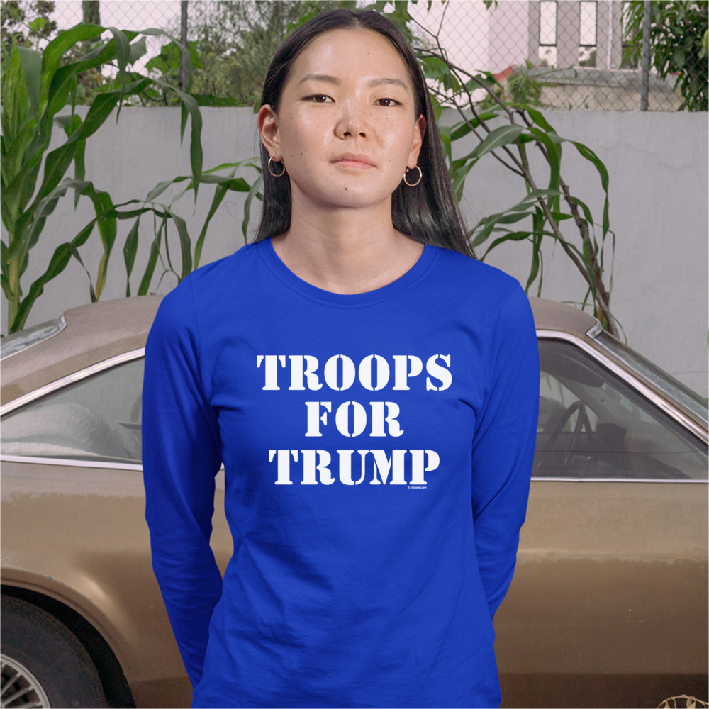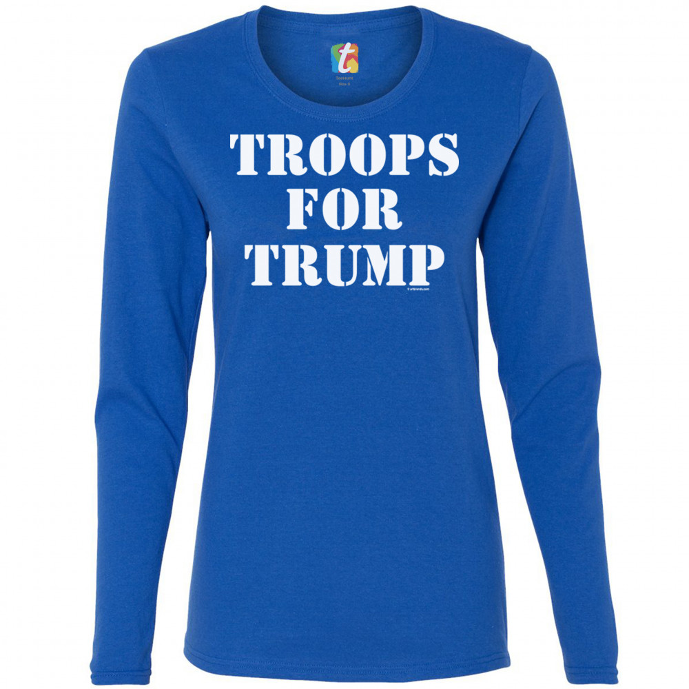 TROOPS FOR TRUMP women's long sleeve t-shirt donald trump 2020 support our troops royal blue