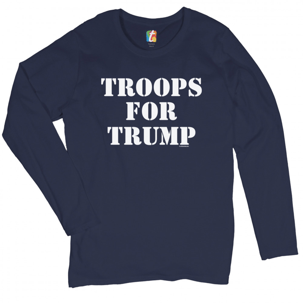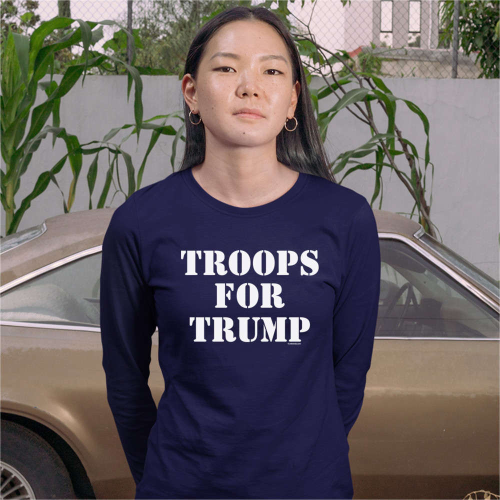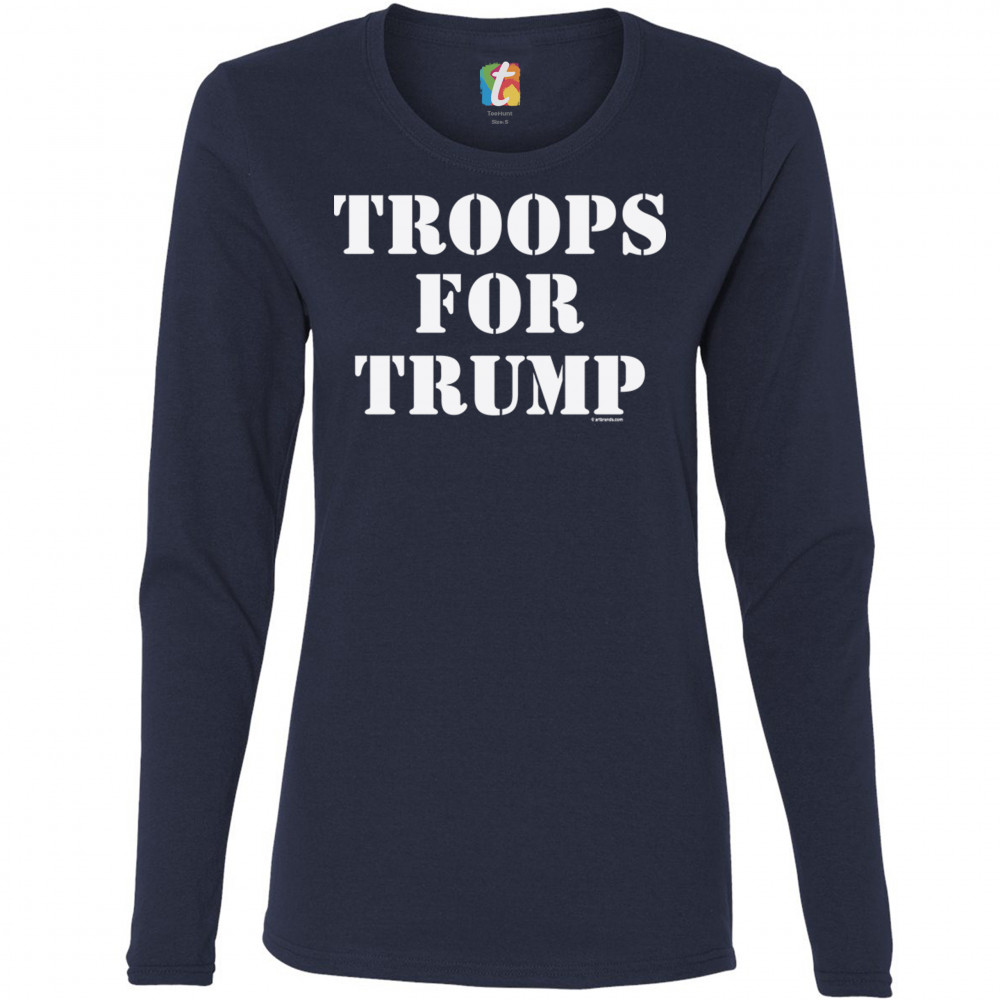 TROOPS FOR TRUMP women's long sleeve t-shirt donald trump 2020 support our troops navy blue