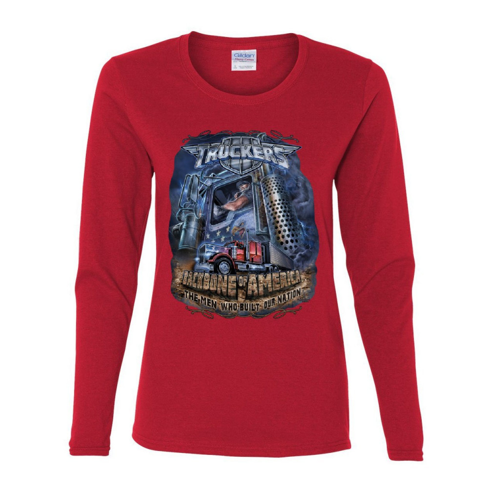 TRUCKERS - BACKBONE OF AMERICA truckers backbone of america women's long sleeve tee truck driver hauler diesel red