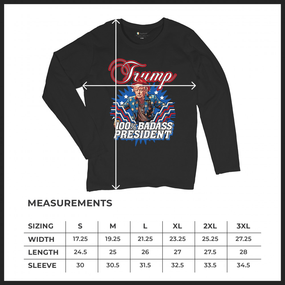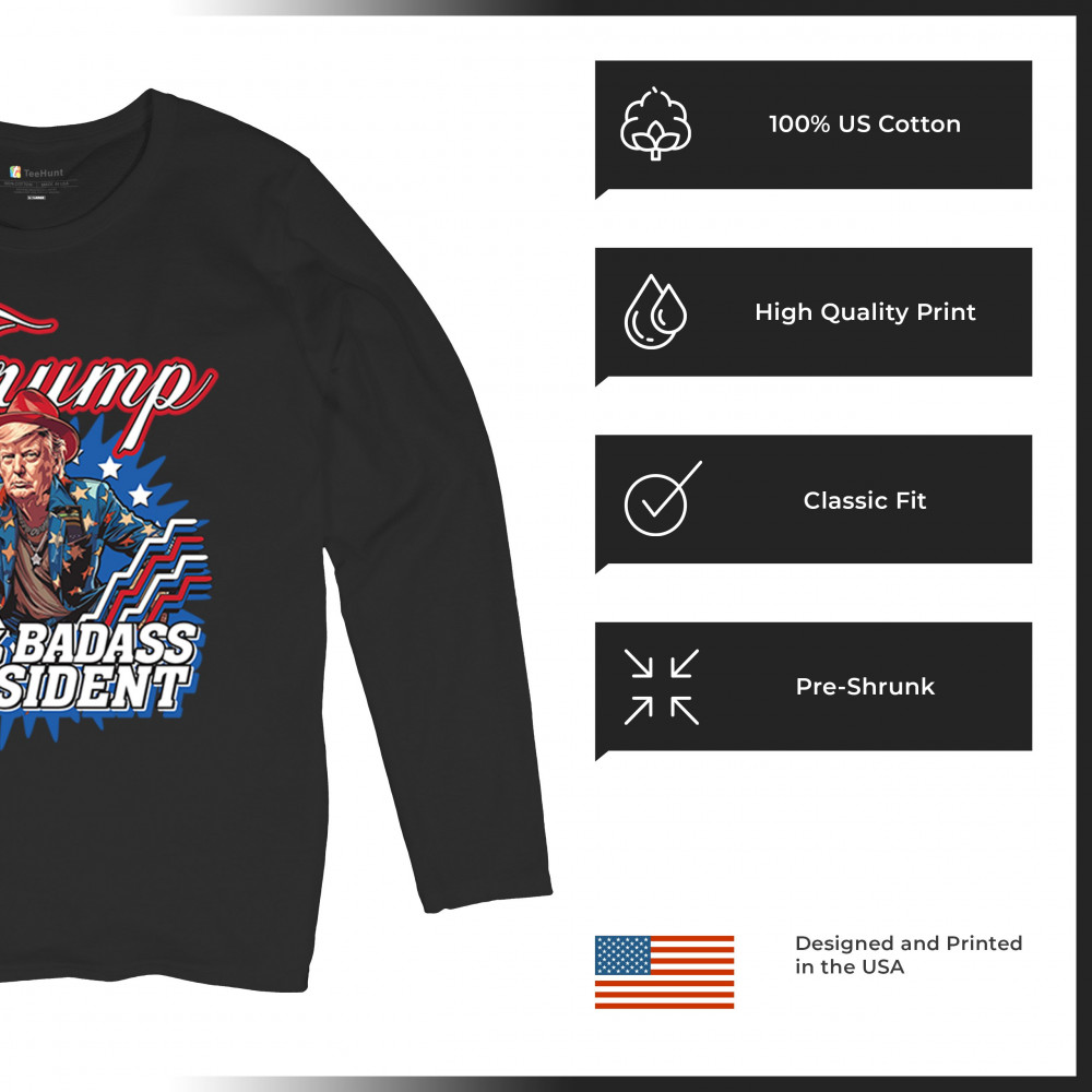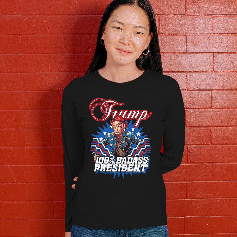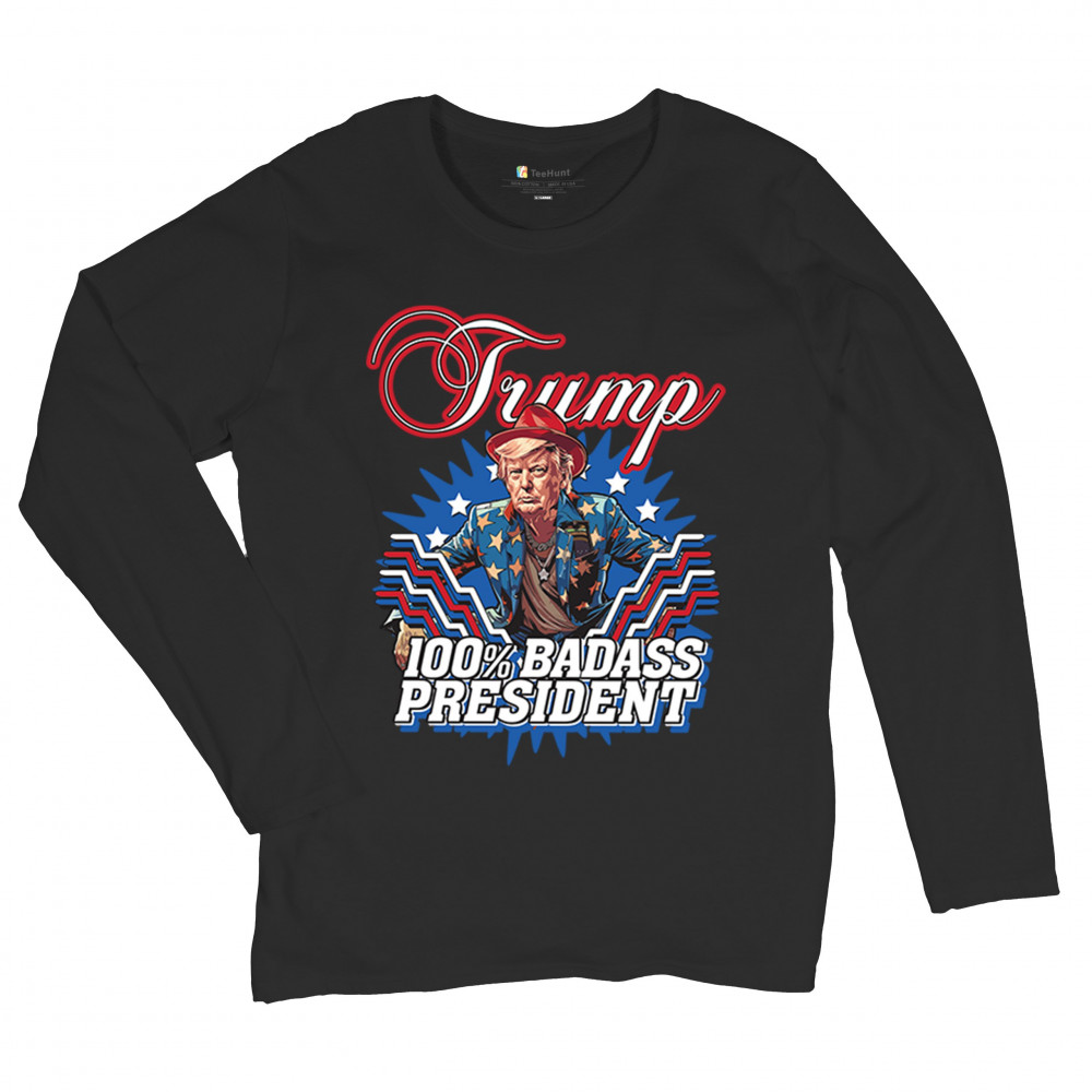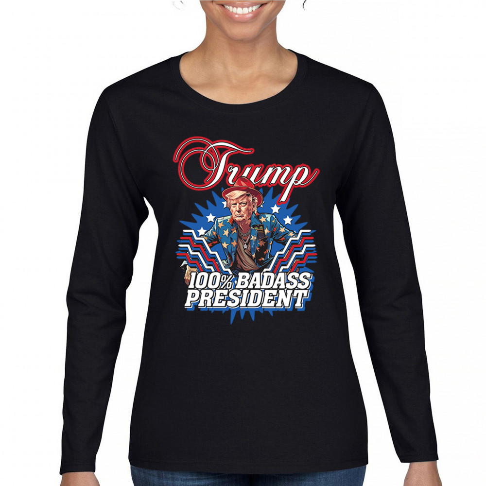 TRUMP 100% BADASS PRESIDENT women's long sleeve t-shirt maga 2024 president 47 black