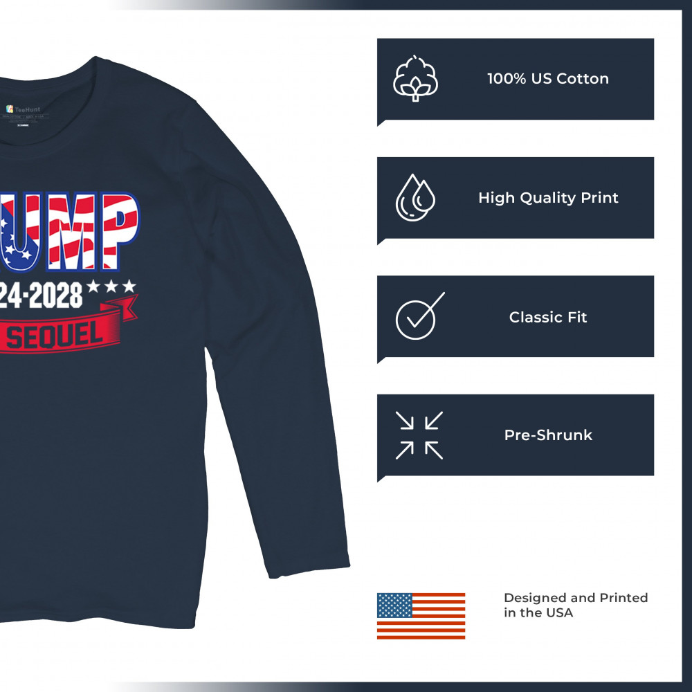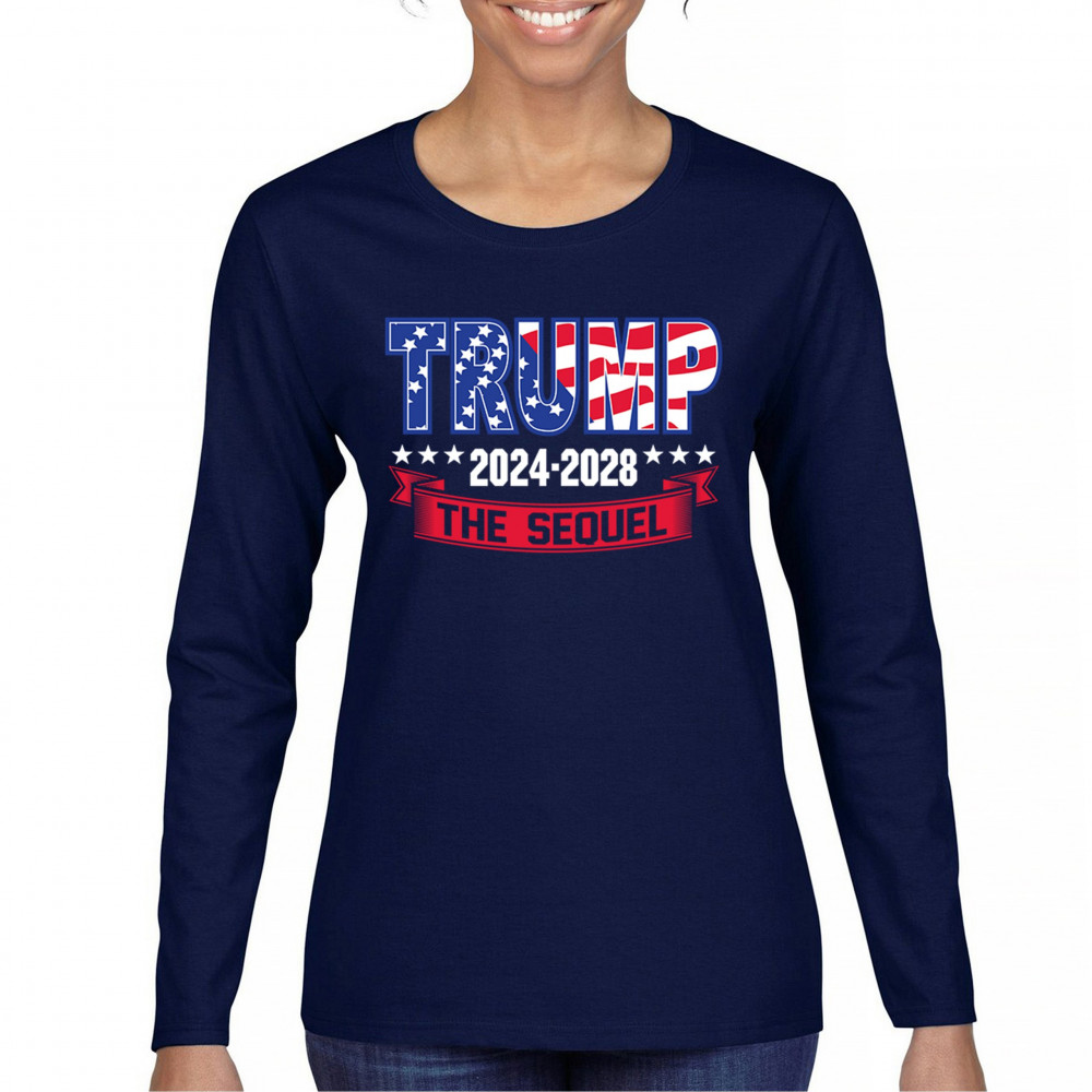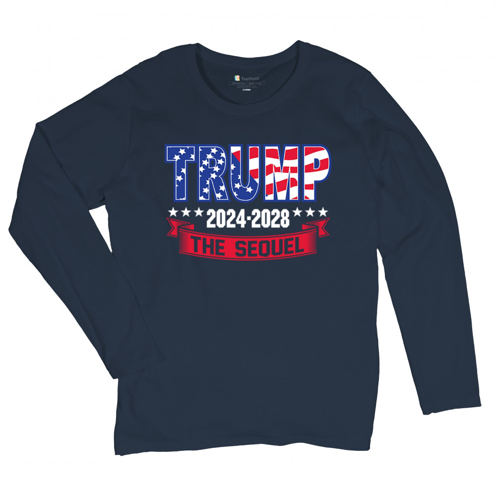 Stand with Trump for 2024-2028 in "The Sequel" design, celebrating America First, conservative values, and 4 more years of patriotic vision.