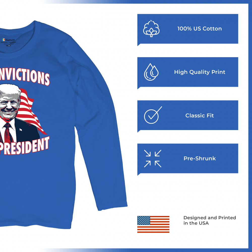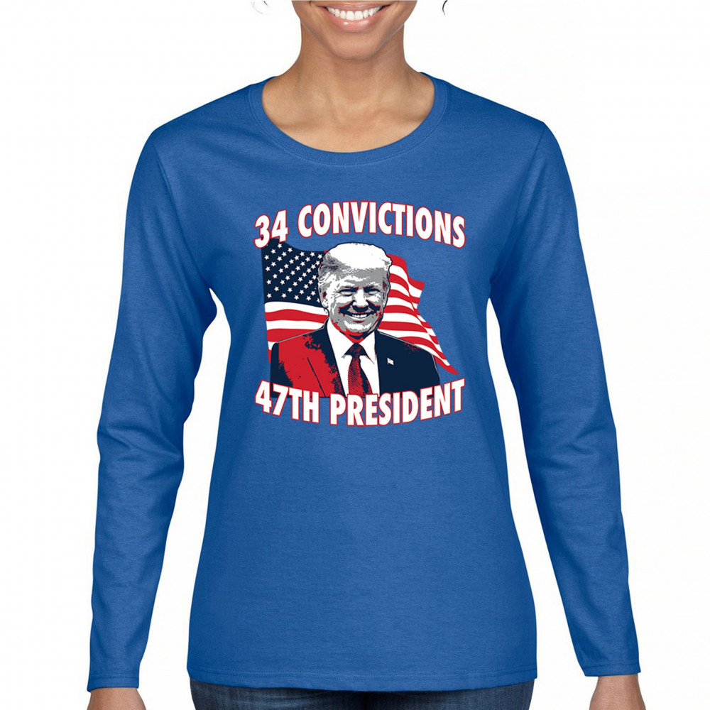 Show your support for Trump's 2024 campaign with the "34 Convictions, 47th President" design. Perfect for rallies, patriotic events, and conservative gatherings.