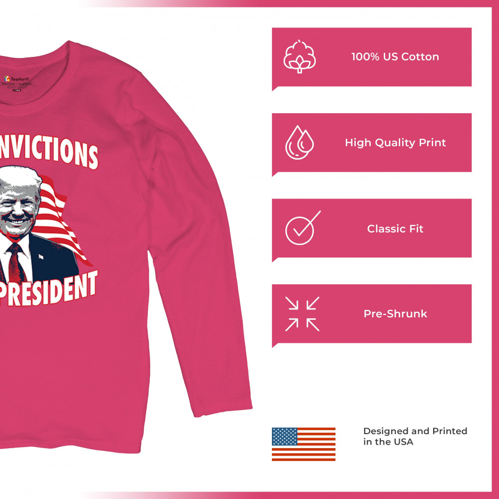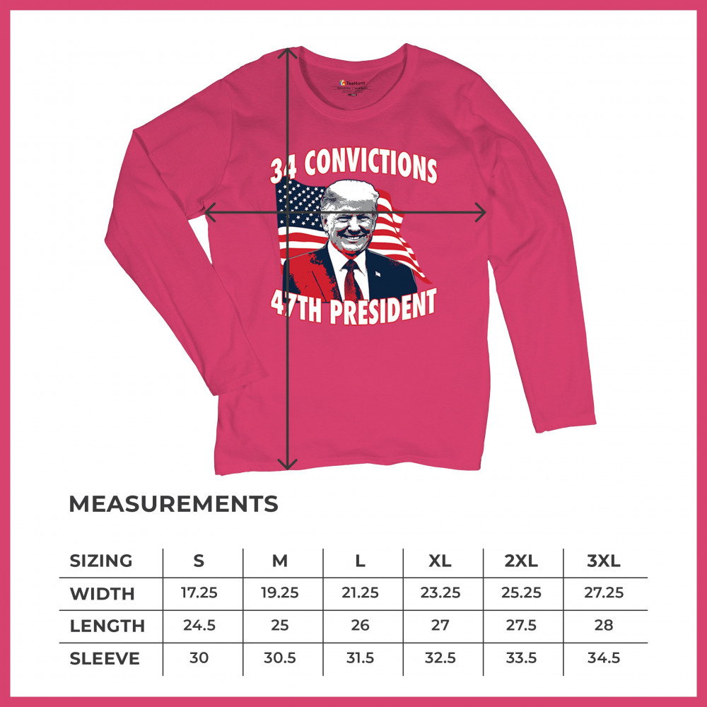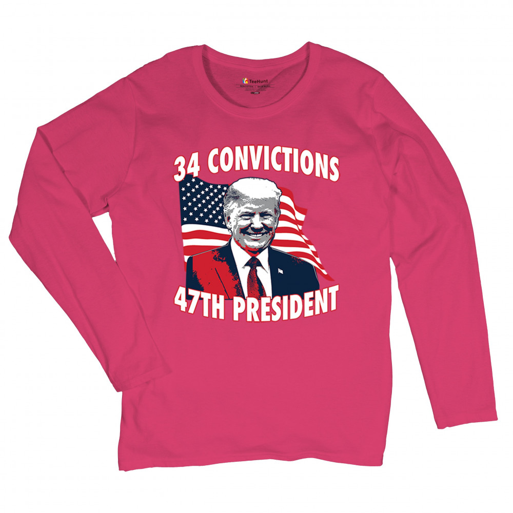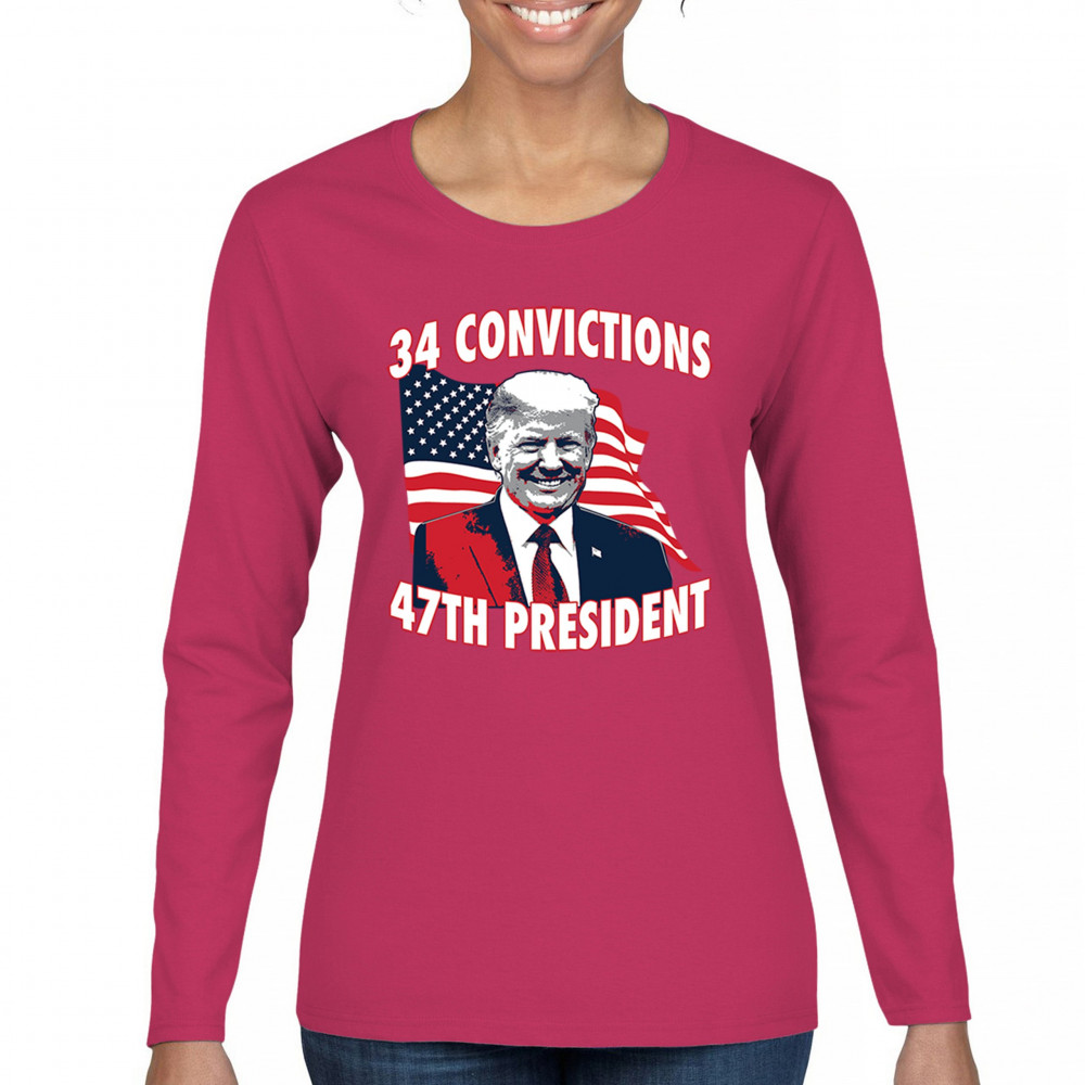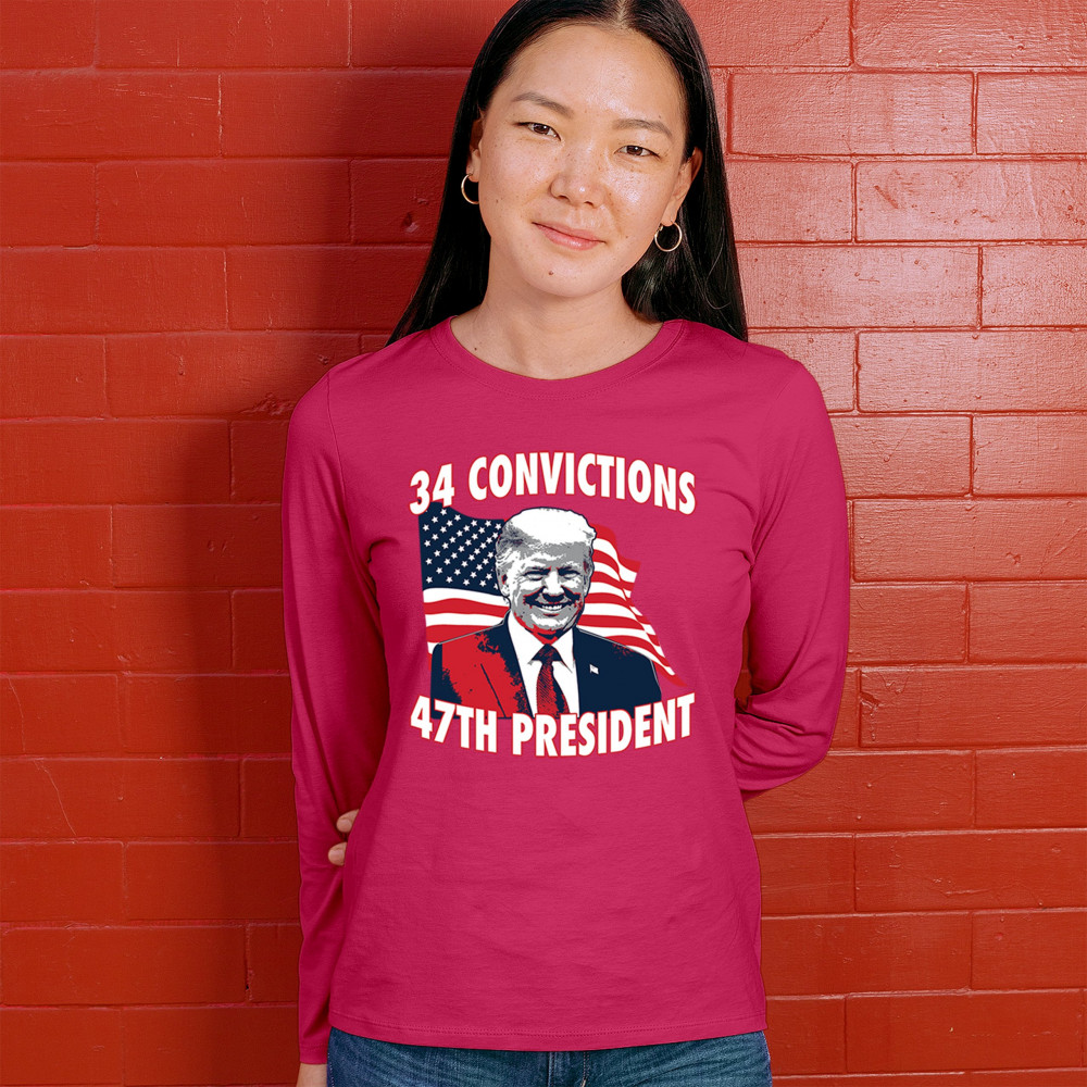 Show your support for Trump's 2024 campaign with the "34 Convictions, 47th President" design. Perfect for rallies, patriotic events, and conservative gatherings.