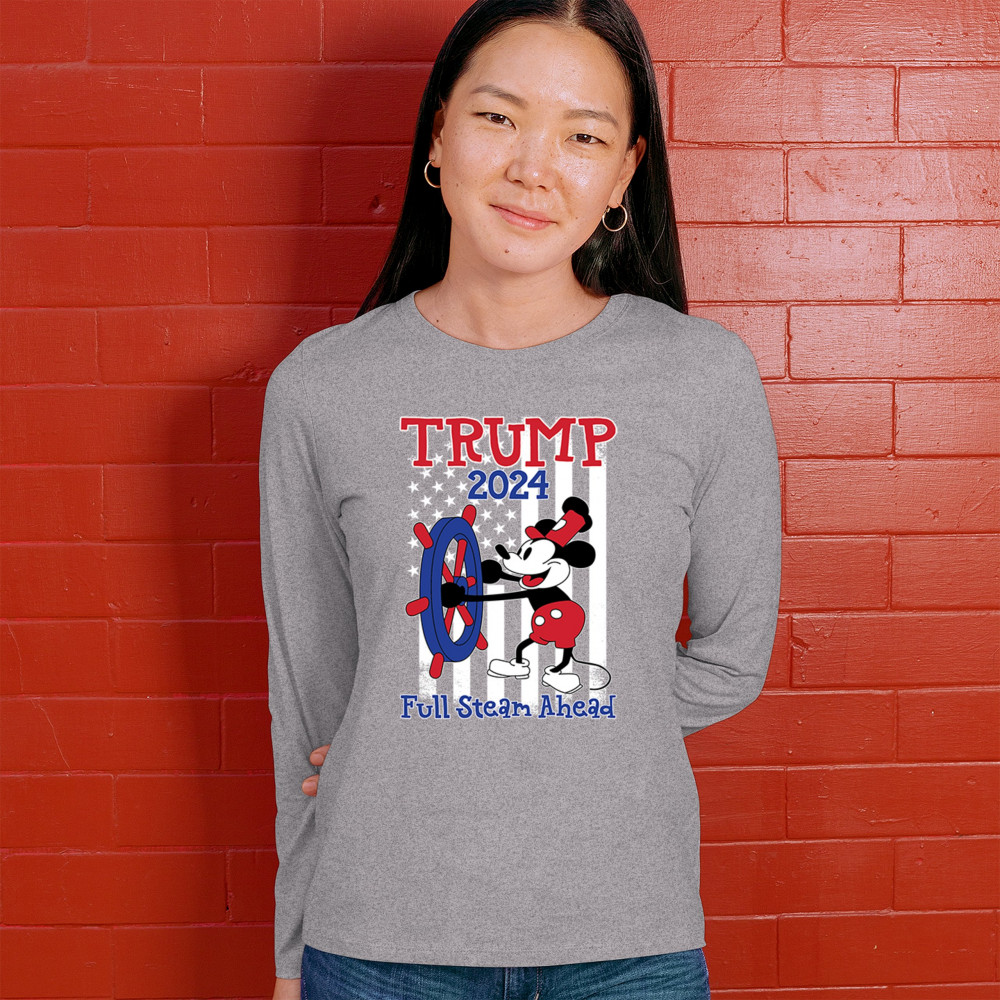 Show your support for Trump with the "Full Steam Ahead" design, symbolizing conservative values and America's resilience. Perfect for rallies and daily wear.