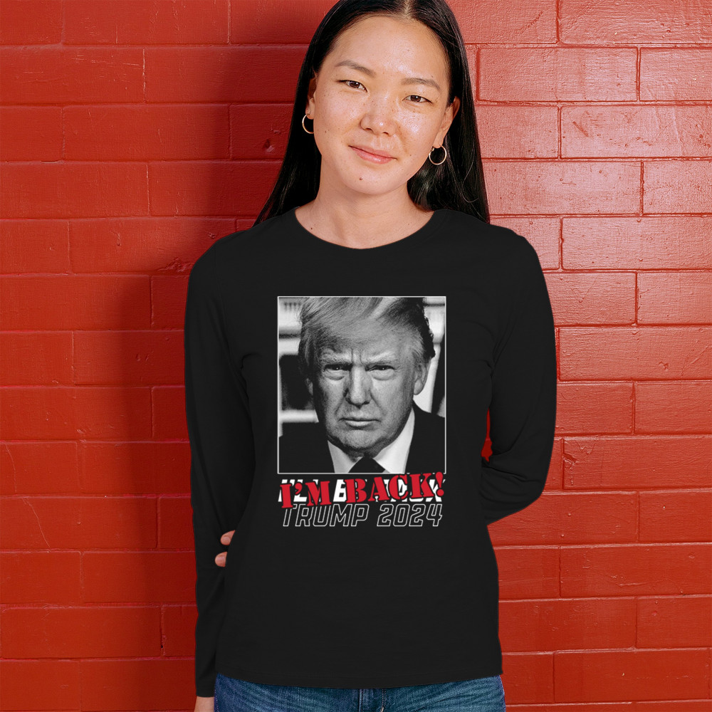 Show your support for Trump 2024 with this "I'm Back!" design, perfect for conservatives, Republicans, and patriotic Americans who believe in the Red Wave.
