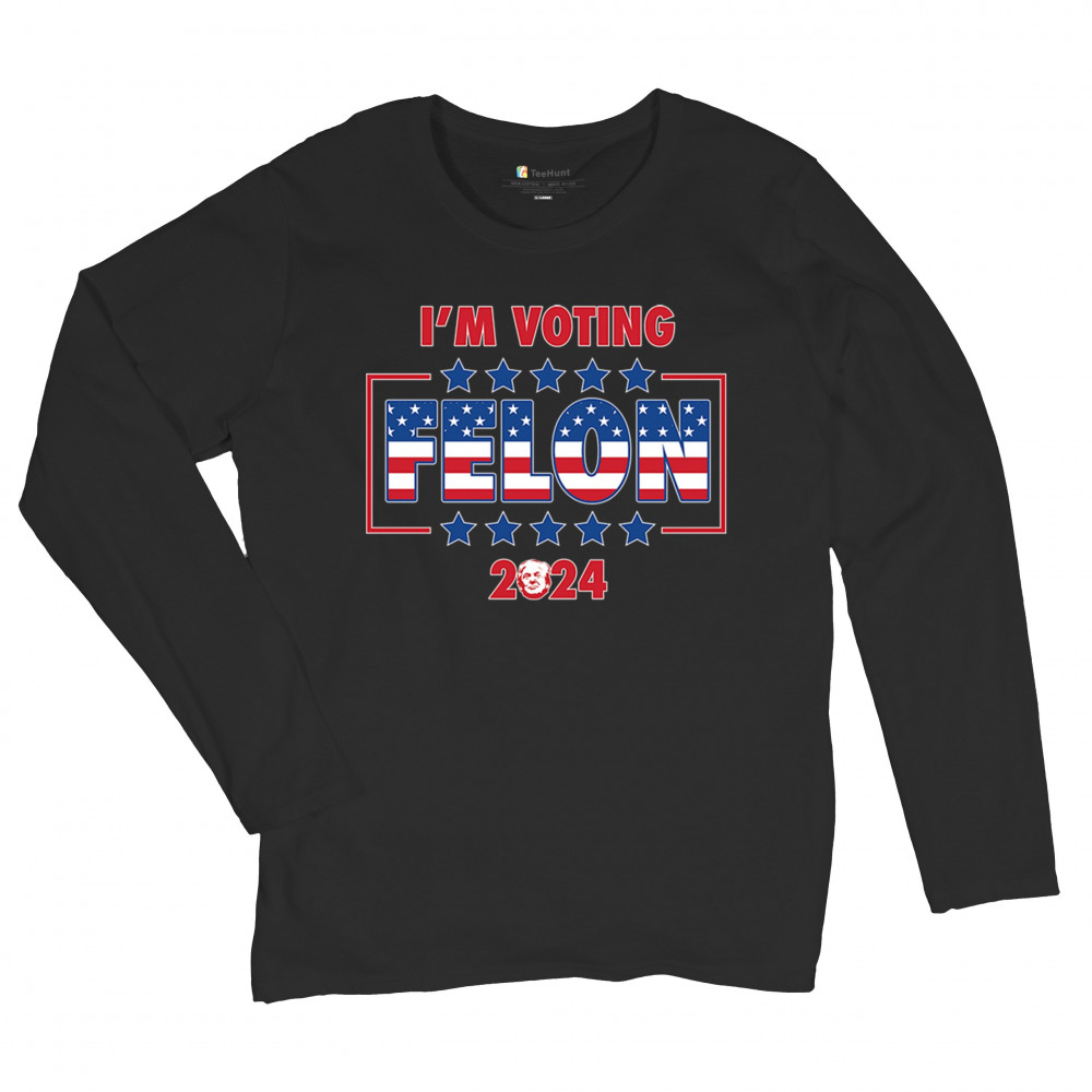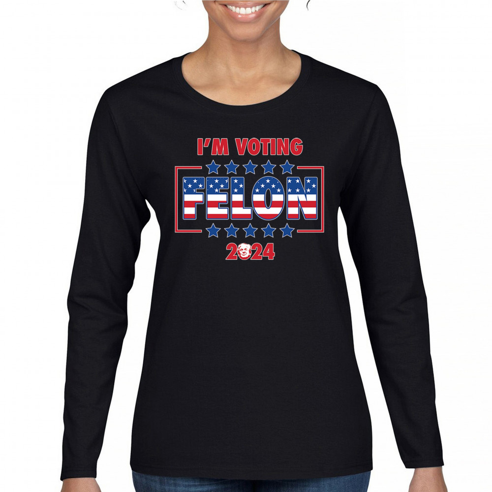 Show your support with the "I'm Voting Felon 2024" design, perfect for conservative patriots and Trump supporters. Featuring an American flag motif.