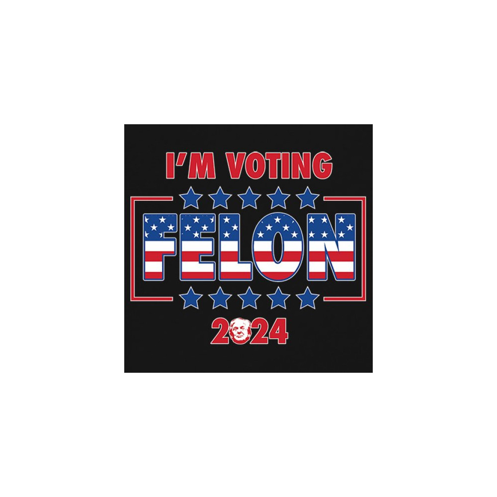 Stand out and express your political beliefs with our "I'm Voting Felon 2024" design. This bold and eye-catching design is perfect for conservative patriots and Trump supporters. Featuring a vibrant American flag motif, it’s ideal for rallies, political events, and daily wear. Show your commitment to America First and your defiance against opposition. This design is a perfect gift for like-minded friends and family who support the same values and are proud to show it.