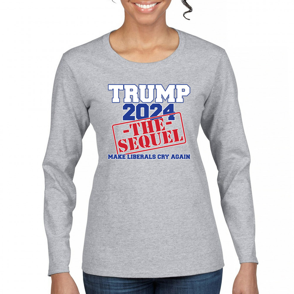 Gear up for the sequel to the America First movement with "Trump 2024 the Sequel." As a loyal Trump supporter, join the train to victory and champion conservative values. Trust in God, not government, and never surrender to those who betray our nation. Let the American flag fly high as a symbol of resilience and dedication to President Trump and the Republican cause.