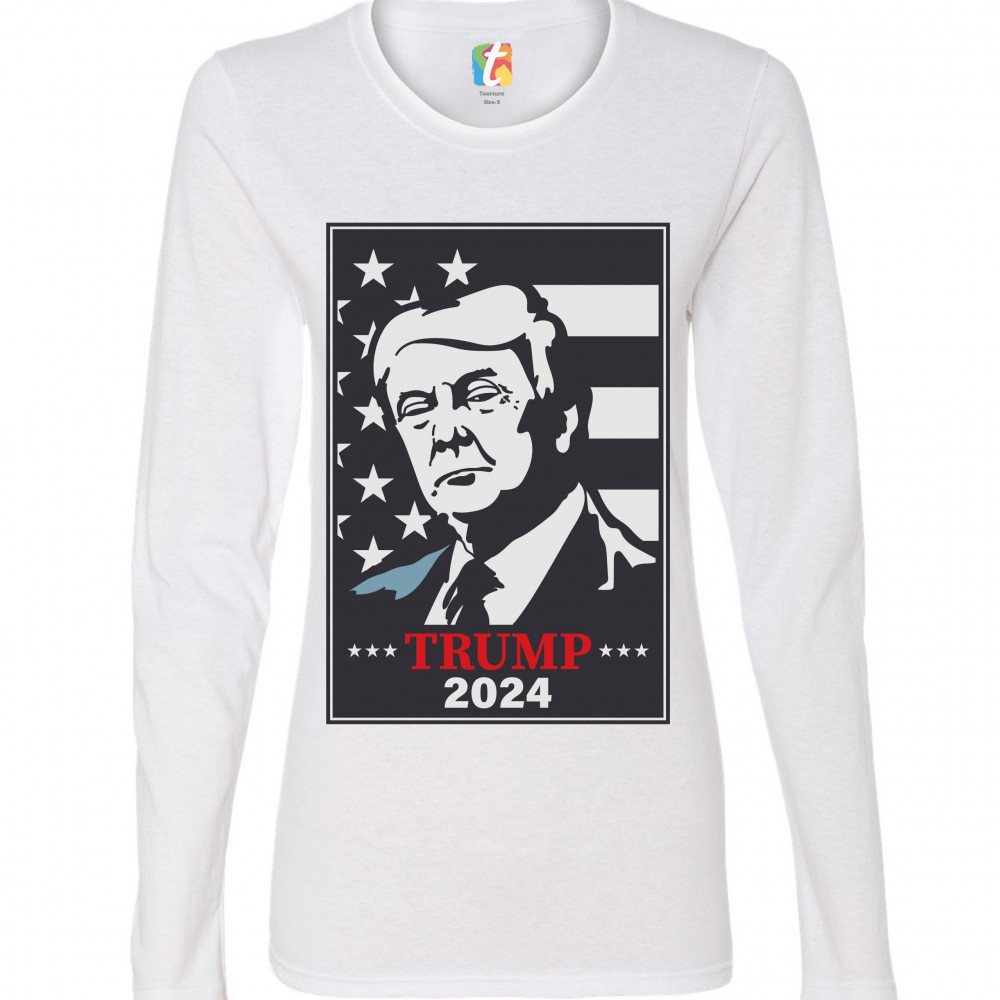TRUMP 2024 women's long sleeve t-shirt keep america great re-elect donald trump white
