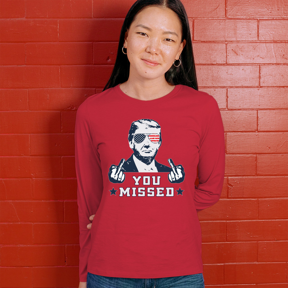 Celebrate Trump's resilience with this bold "You Missed" design. Perfect for rallies and political events. Show your unwavering support for conservative values.