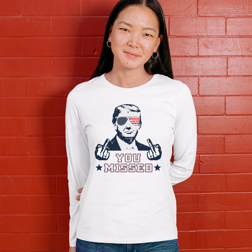 Celebrate Trump's resilience with this bold "You Missed" design. Perfect for rallies and political events. Show your unwavering support for conservative values.