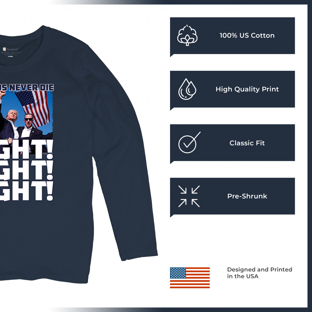 Show your support for Trump and Vance in 2024 with this bold design featuring the American flag and powerful slogans. Perfect for rallies and conservative patriots.
