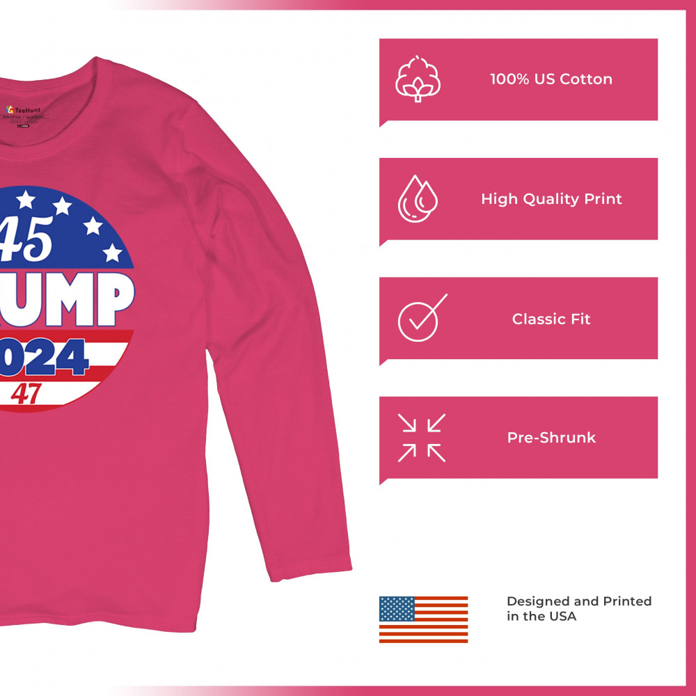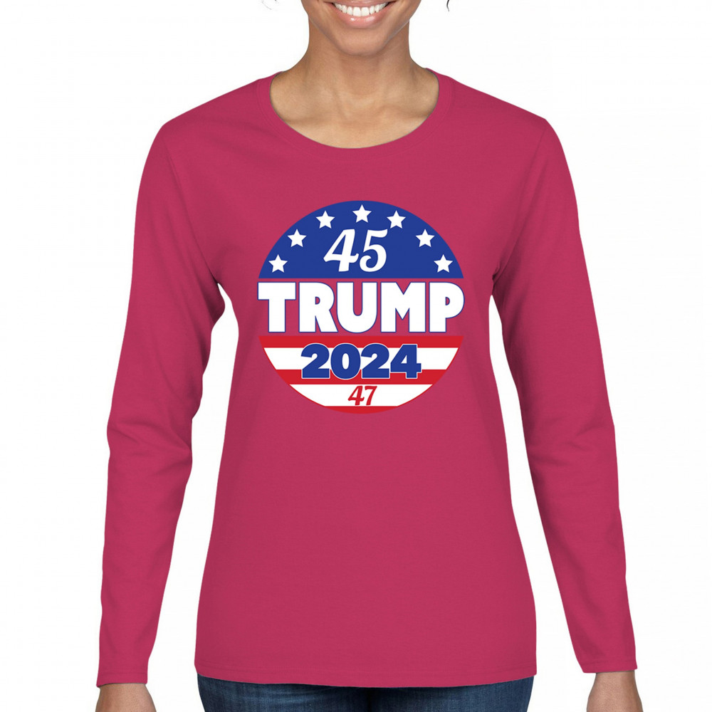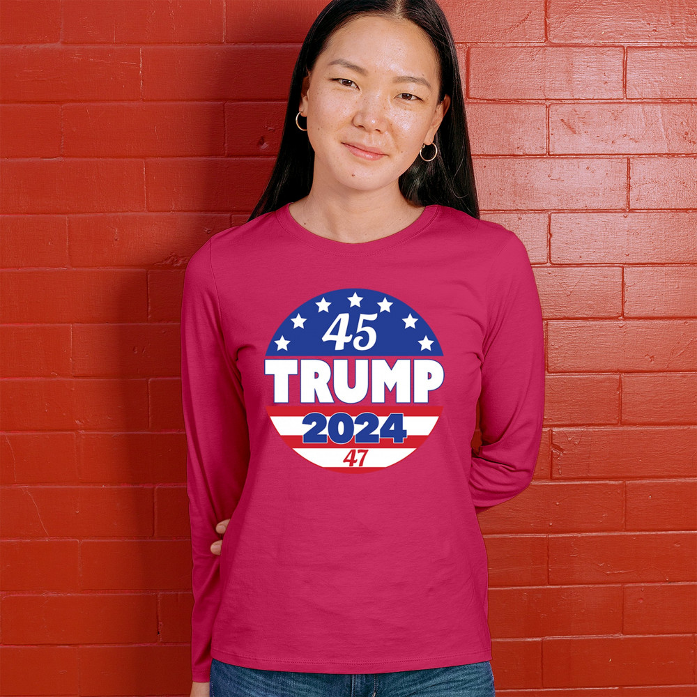 Embrace your conservative pride with this bold "45 TRUMP 2024" design. Representing America First, Republican victory, and the people’s mandate, it’s the perfect way to showcase your support for Donald J. Trump’s historic journey to the 47th presidency. Whether at rallies, political events, or casual outings, this emblem unites Trump supporters in a fight for freedom and patriotism.