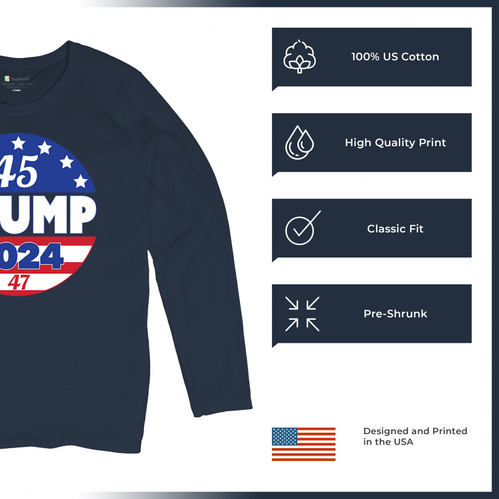Embrace your conservative pride with this bold "45 TRUMP 2024" design. Representing America First, Republican victory, and the people’s mandate, it’s the perfect way to showcase your support for Donald J. Trump’s historic journey to the 47th presidency. Whether at rallies, political events, or casual outings, this emblem unites Trump supporters in a fight for freedom and patriotism.