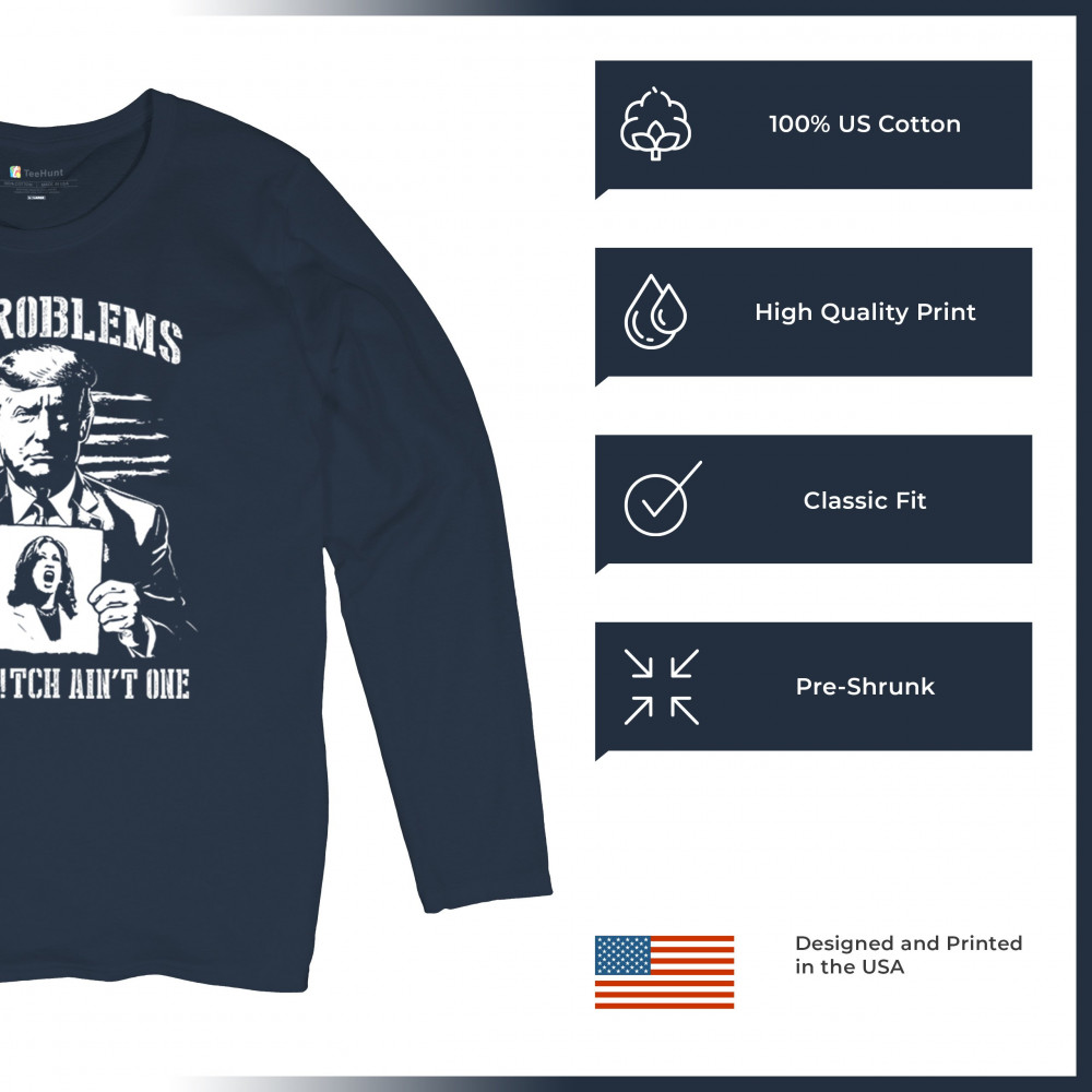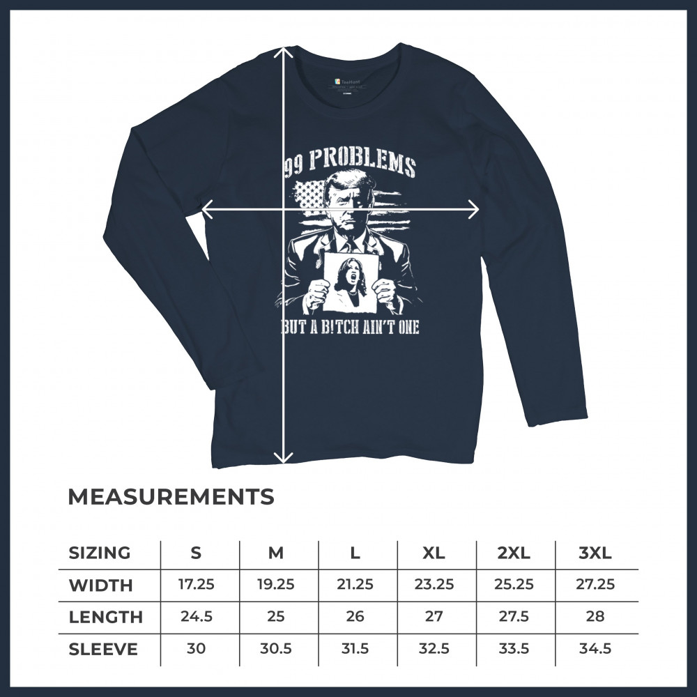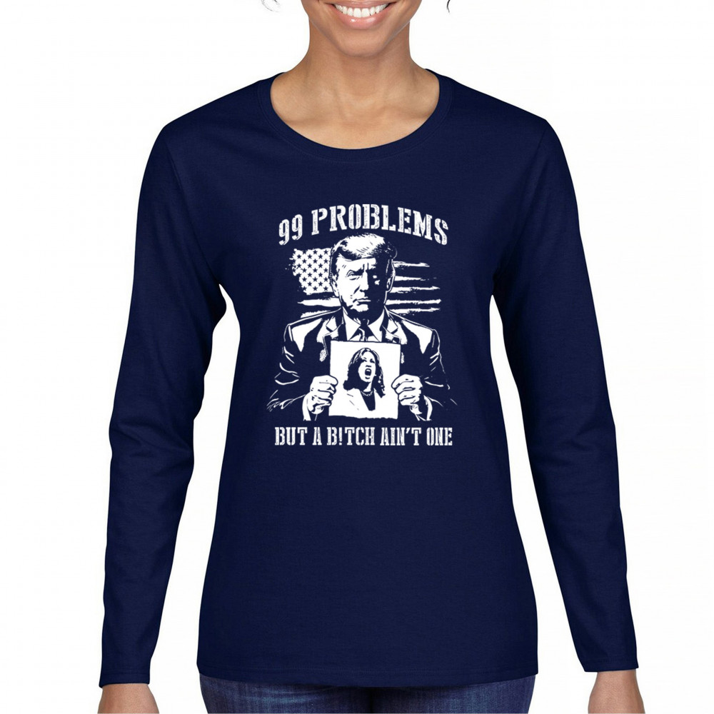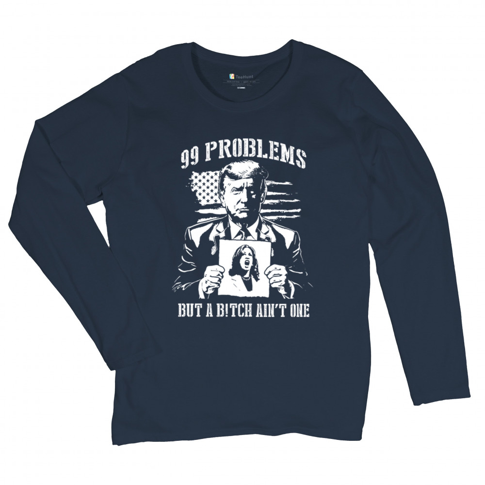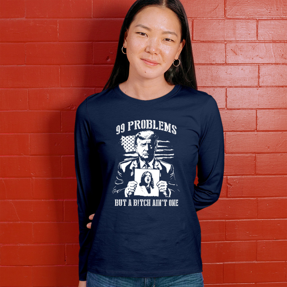 Bold conservative "99 Problems But a B*tch Ain’t One" design featuring Donald J. Trump and an American flag. Perfect for proud Republicans and patriots.