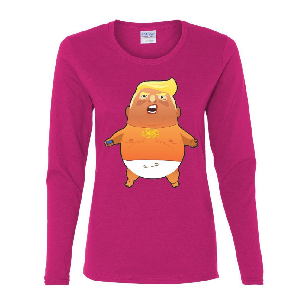 TRUMP BABY BLIMP BALOON trump baby baloon women's long sleeve tee anti trump funny impeach resist resign hot pink