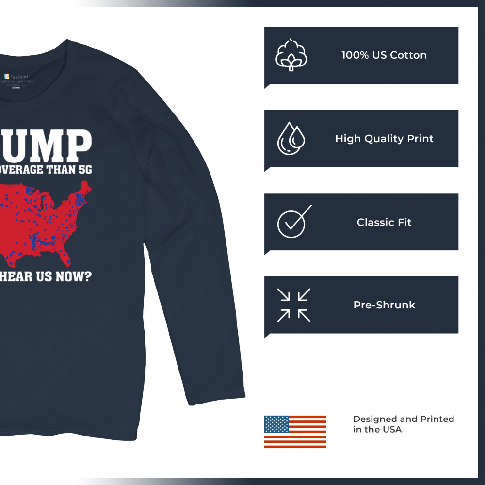 "Trump: Better Coverage Than 5G" design celebrates Republican victory and America First values. Perfect for rallies, events, or gifting patriots.