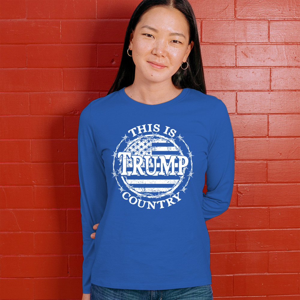Show your support for Trump and JD Vance with the "Trump Country" design, featuring a distressed American flag and barbed wire. Perfect for rallies and patriotic events.