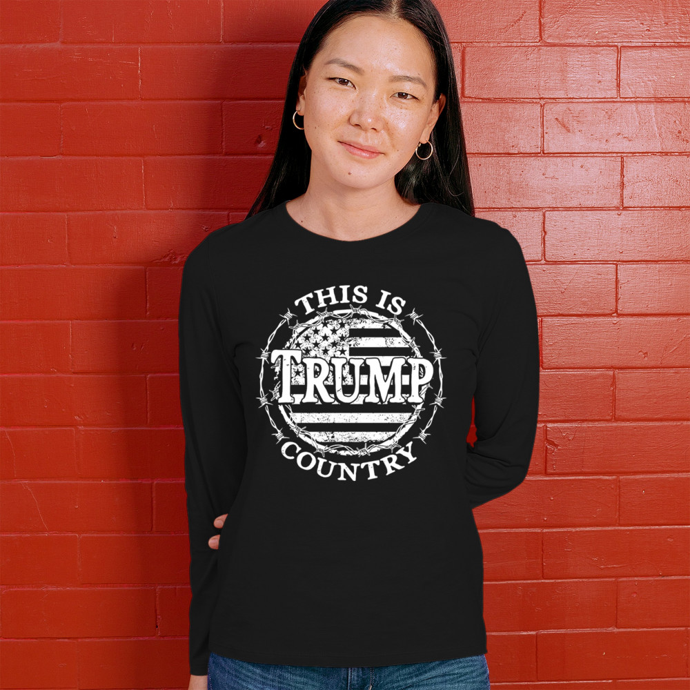 Celebrate your unwavering support for Trump and JD Vance with our exclusive "Trump Country" design. Featuring a vintage American flag encircled by barbed wire, this piece makes a strong statement against Kamala Harris and her policies. It's perfect for conservatives who believe in the America First movement. Whether you're attending a rally, political event, or simply expressing your patriotism, this design is ideal for showcasing your values and support for Trump's vision for America.