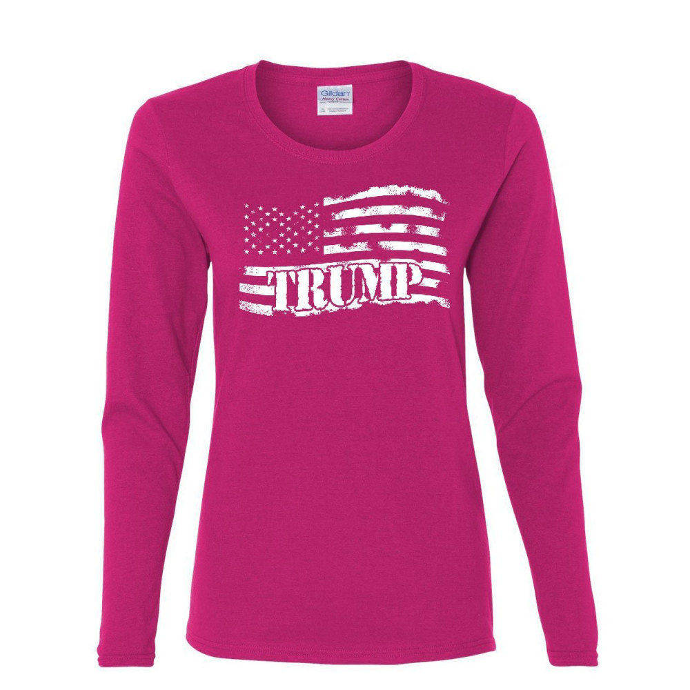 DONALD TRUMP FLAG MAGA women's long sleeve tee make america great again pink