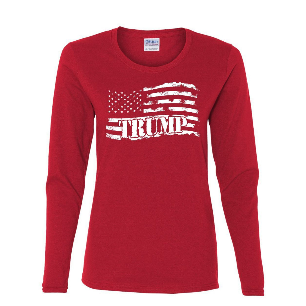DONALD TRUMP FLAG MAGA women's long sleeve tee make america great again red