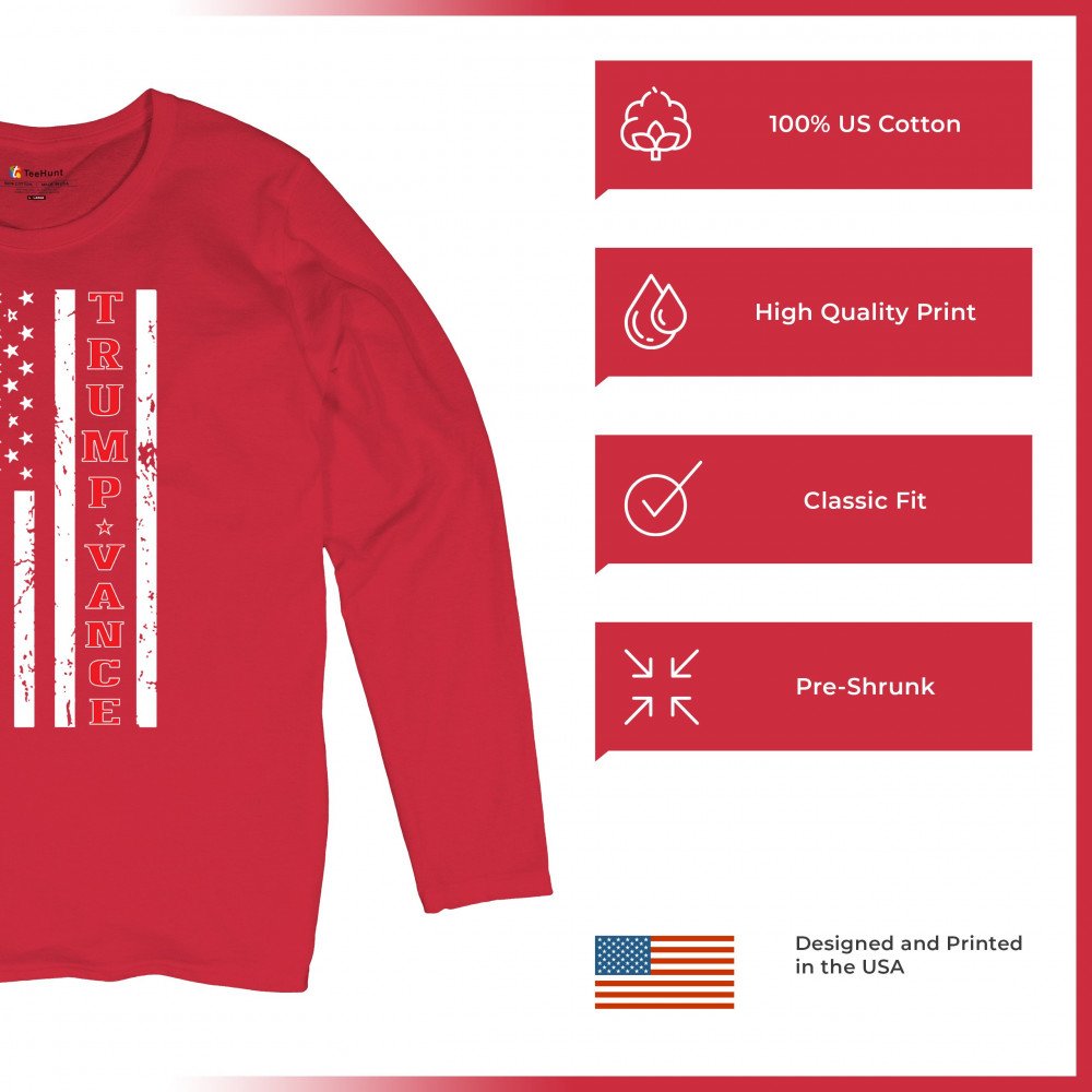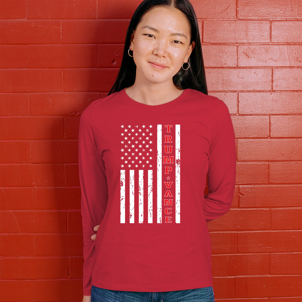 Show your support for Trump Vance 2024 with a bold, rustic American flag design. Perfect for rallies and daily wear. Patriotic and durable.