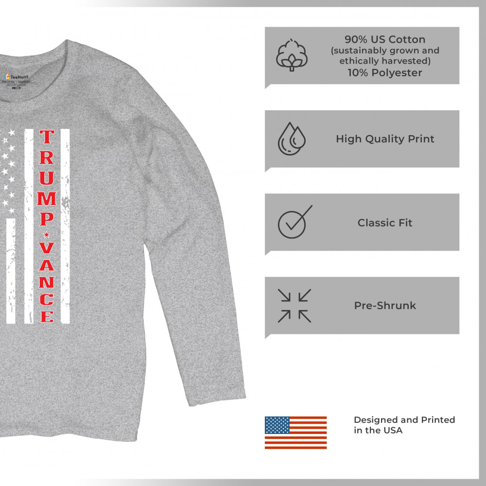 Support the Trump Vance 2024 campaign in style with this bold design featuring a rustic American flag and strong typography. Perfect for political rallies, events, or casual wear, this design is made from premium materials to ensure both comfort and durability. Whether you're attending a rally or just showing your support in daily life, this piece helps you make a powerful statement. It's also an excellent gift idea for fellow conservatives and Trump supporters who want to express their patriotic pride.