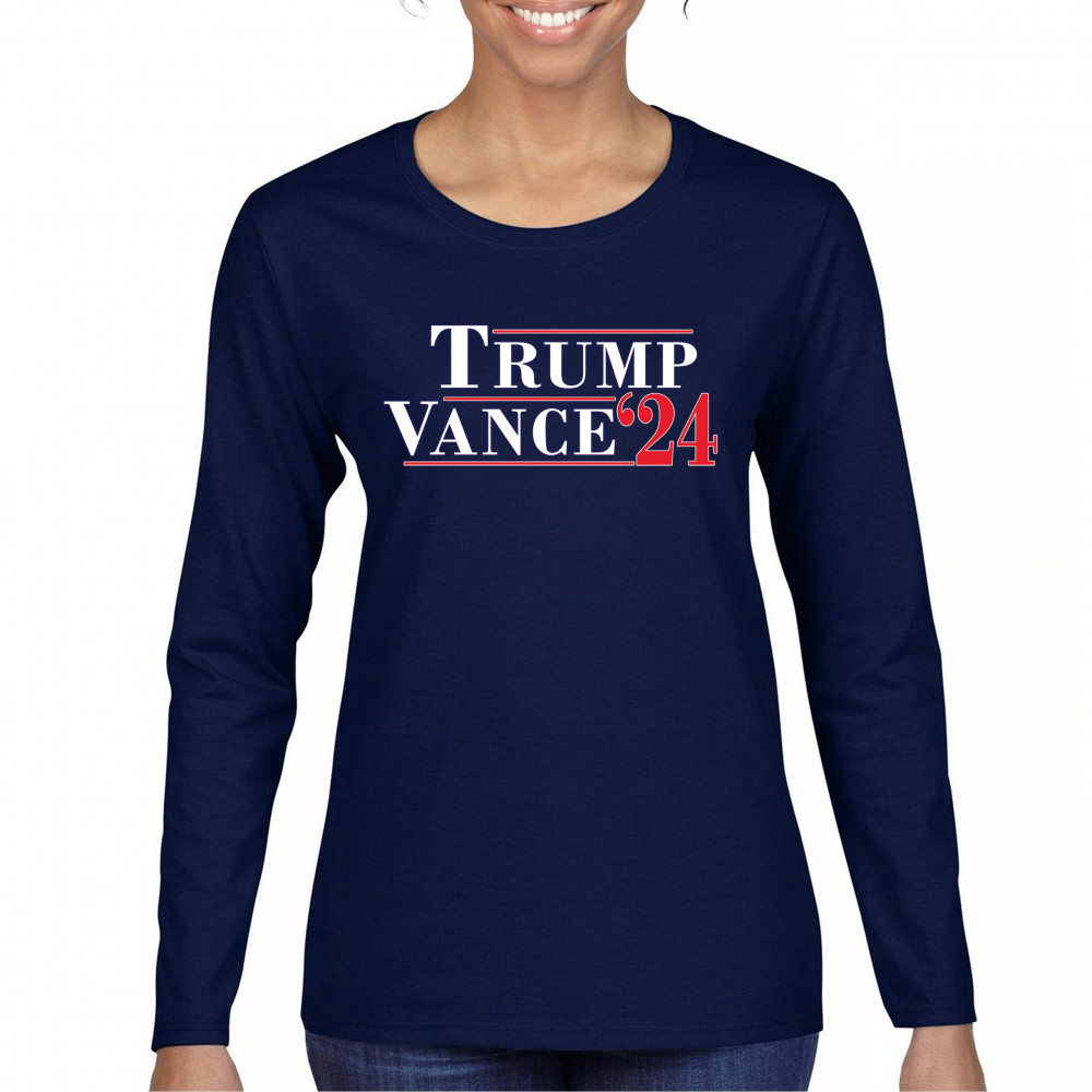 Show your support for Trump Vance 2024 with this patriotic design featuring bold red, white, and blue colors and a flag background. Perfect for rallies and conservative events.