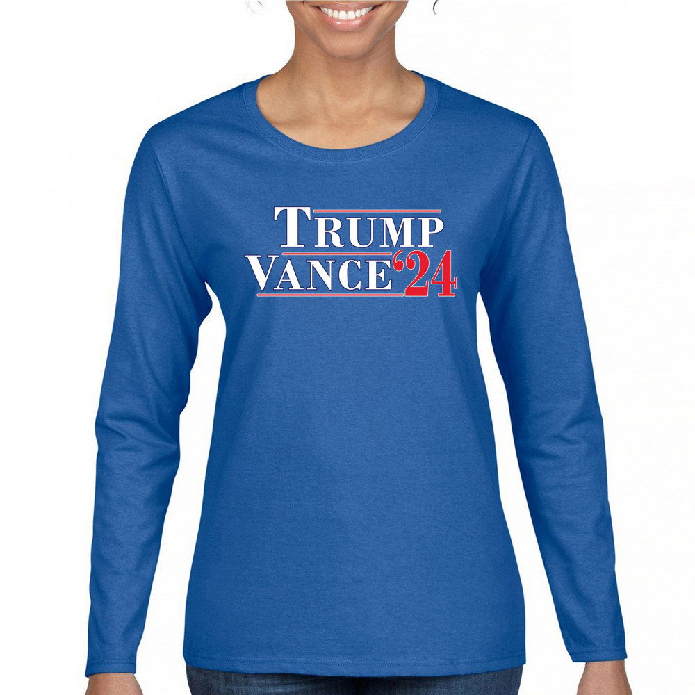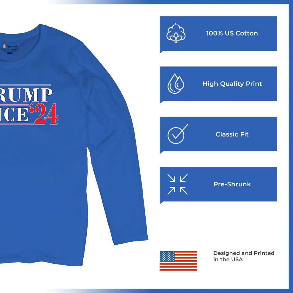 Show your support for Trump Vance 2024 with this patriotic design featuring bold red, white, and blue colors and a flag background. Perfect for rallies and conservative events.