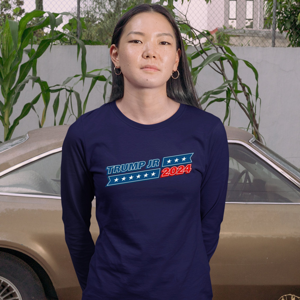 DONALD TRUMP JR 2024 trump jr 2024 women's long sleeve t-shirt conservative keep america trump navy blue