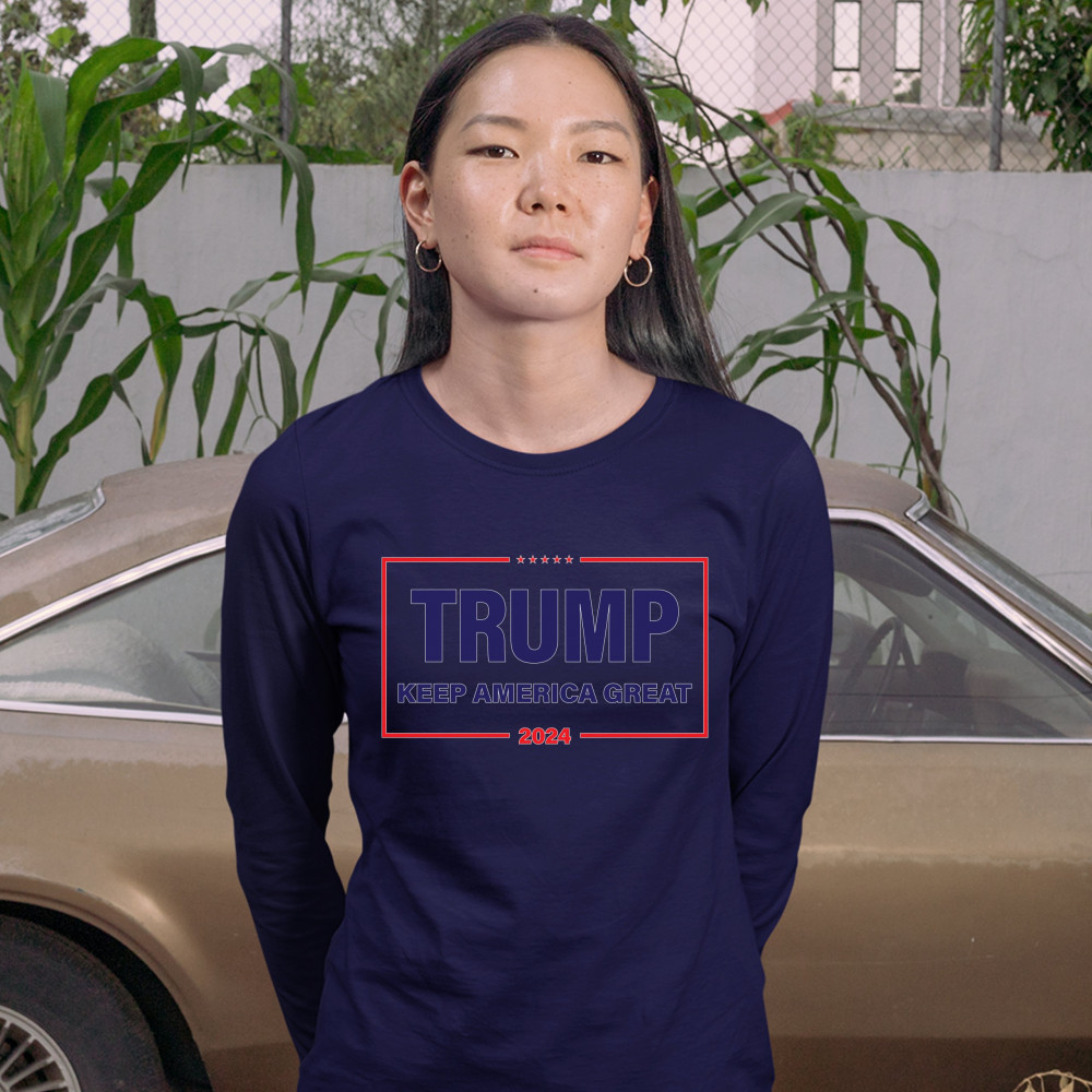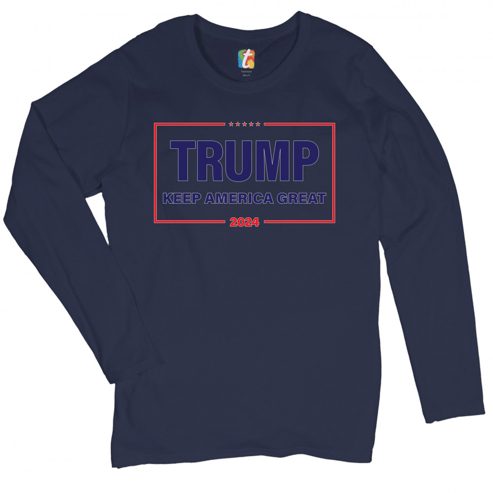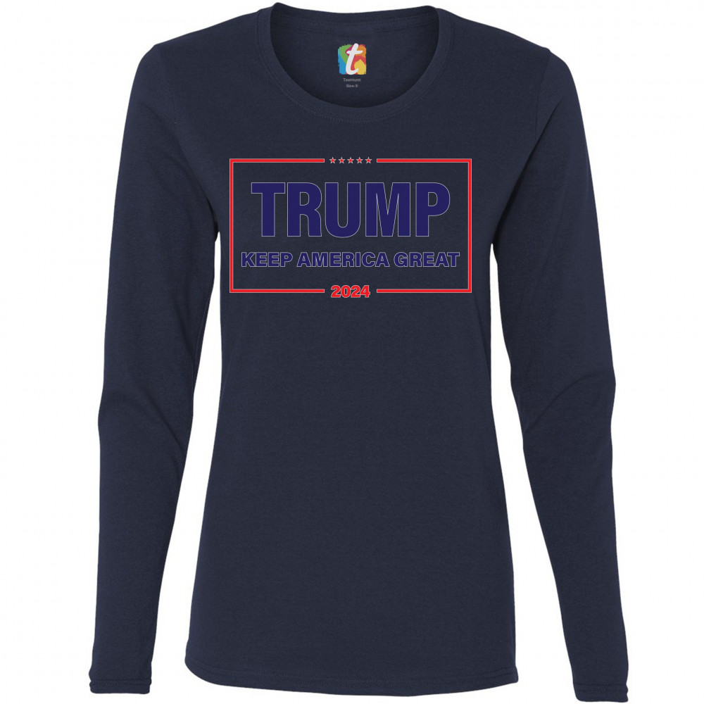 TRUMP KEEP AMERICA GREAT 2024 women's long sleeve t-shirt re-elect donald trump navy blue