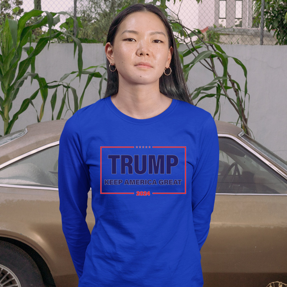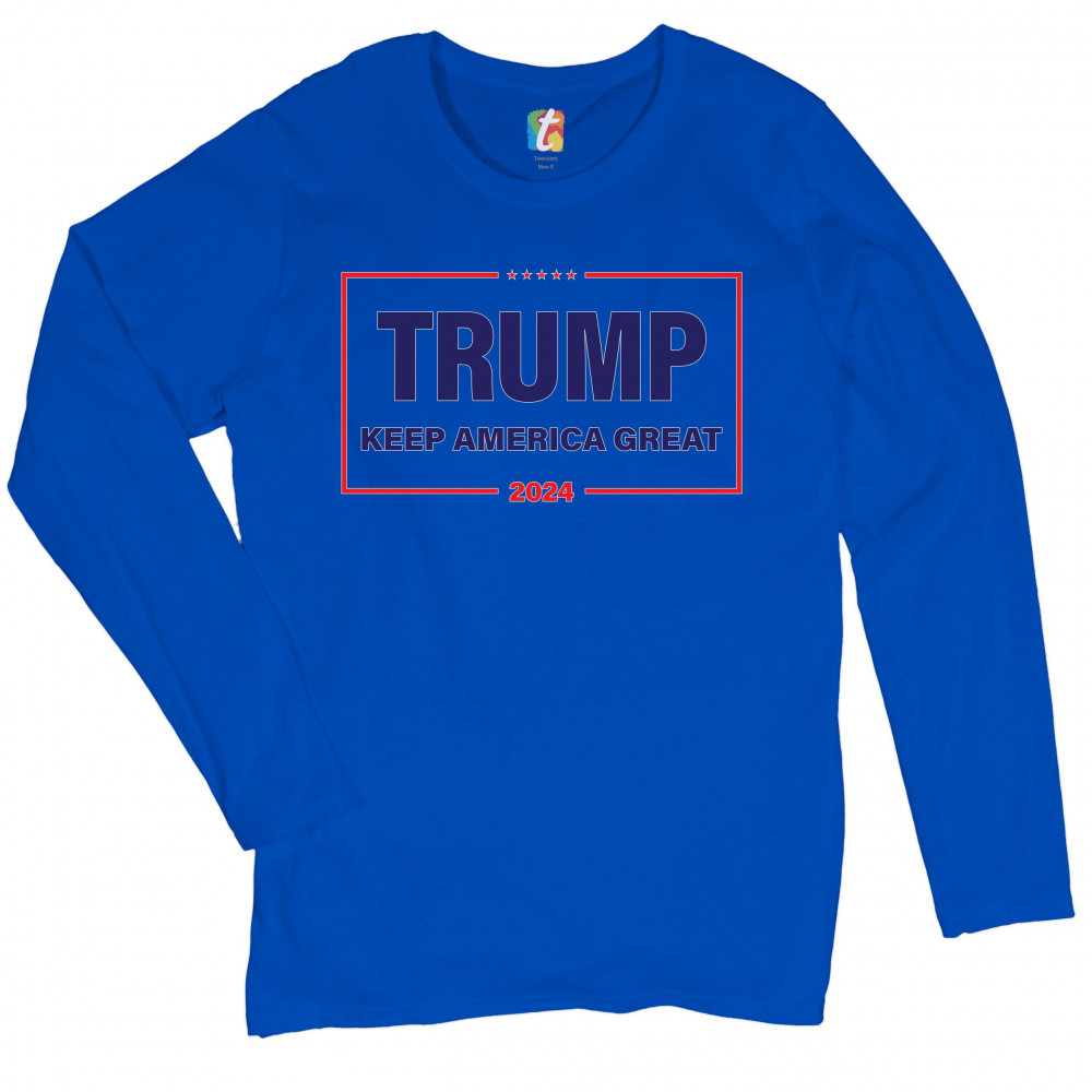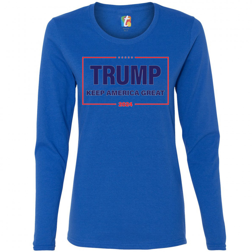 TRUMP KEEP AMERICA GREAT 2024 women's long sleeve t-shirt re-elect donald trump royal blue