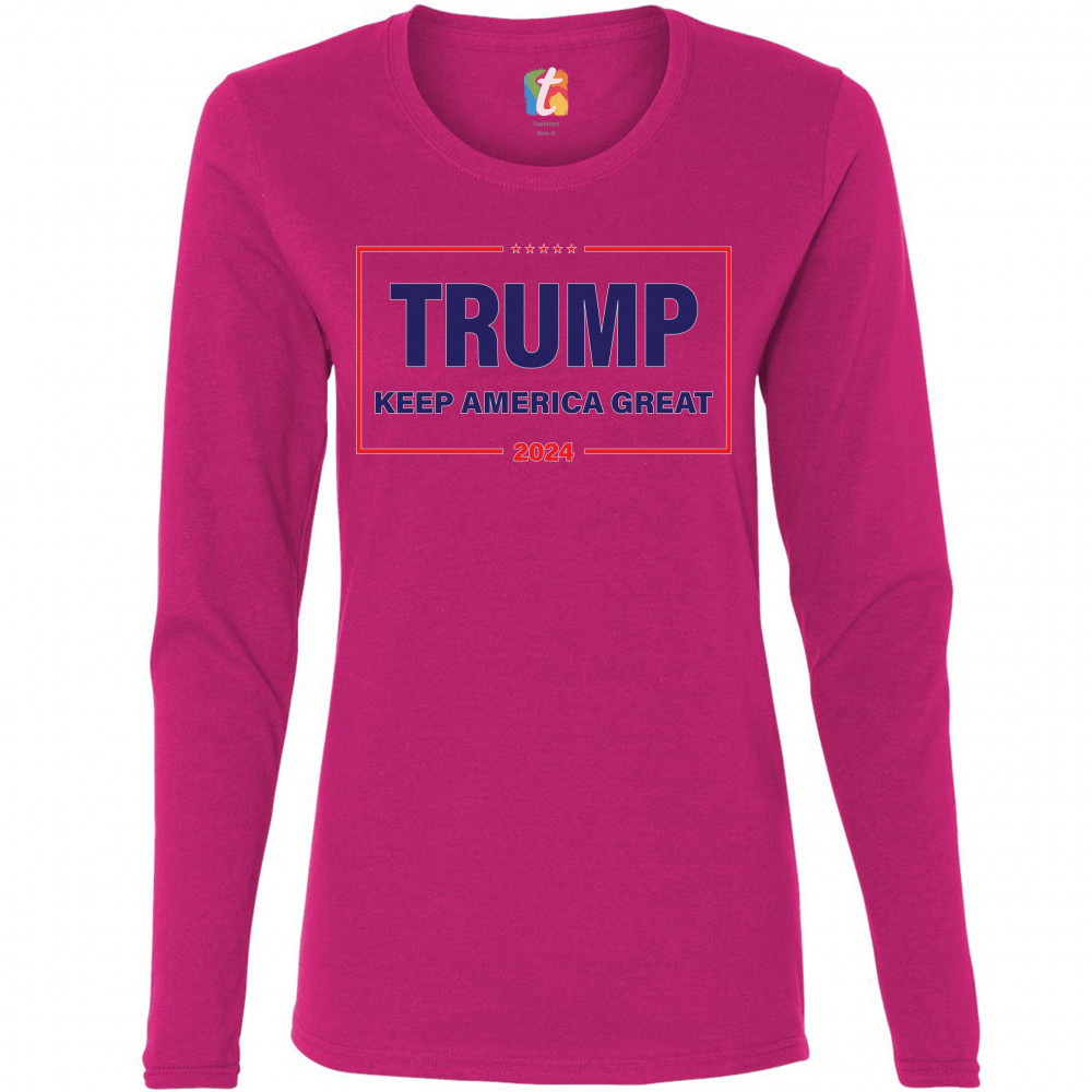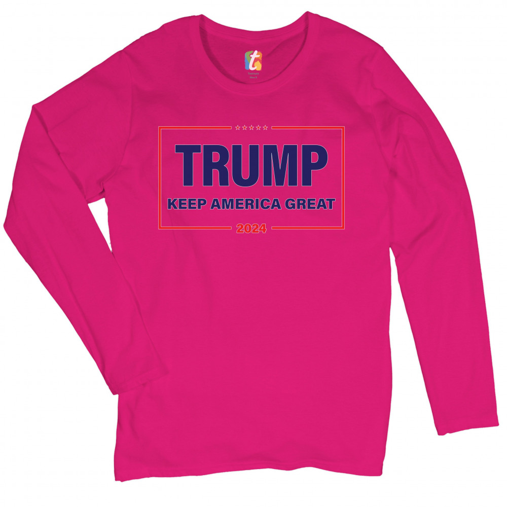 TRUMP KEEP AMERICA GREAT 2024 women's long sleeve t-shirt re-elect donald trump pink