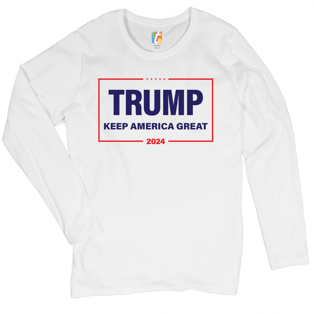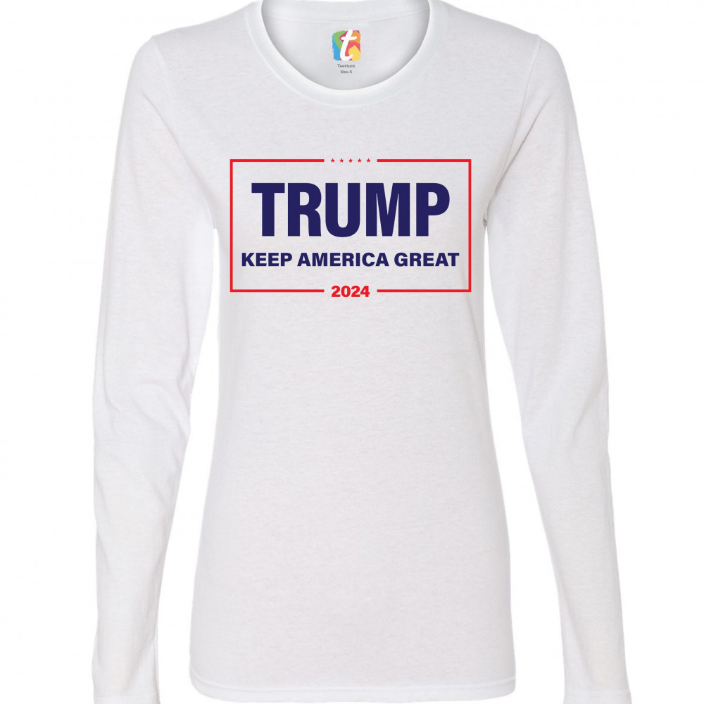 TRUMP KEEP AMERICA GREAT 2024 women's long sleeve t-shirt re-elect donald trump white