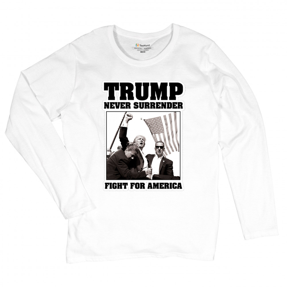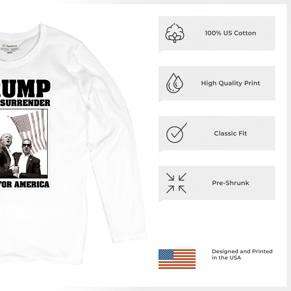 Express your unwavering support with the bold "Trump Never Surrender" design, perfect for rallies and everyday wear. Durable and stylish, show your patriotism proudly.