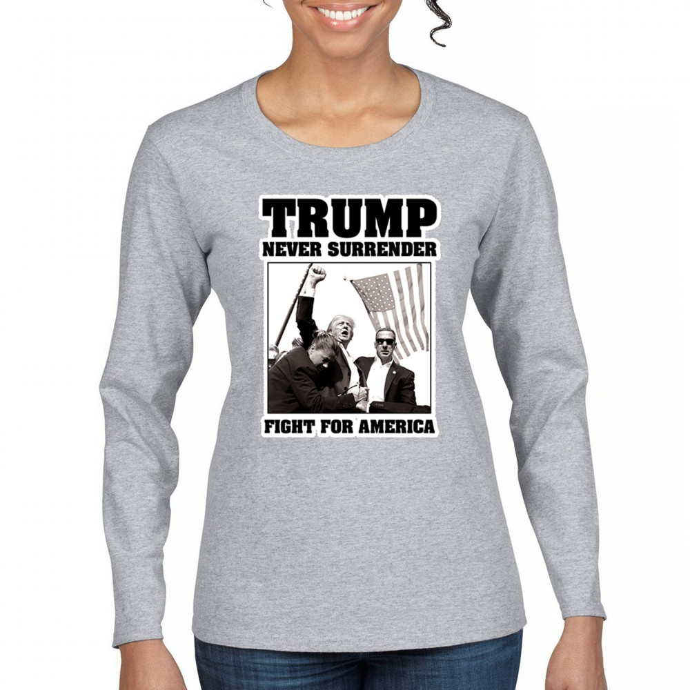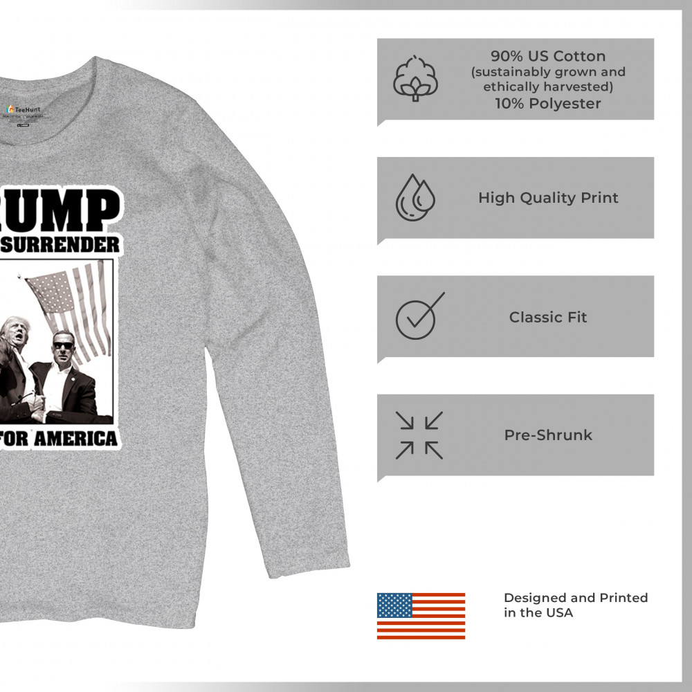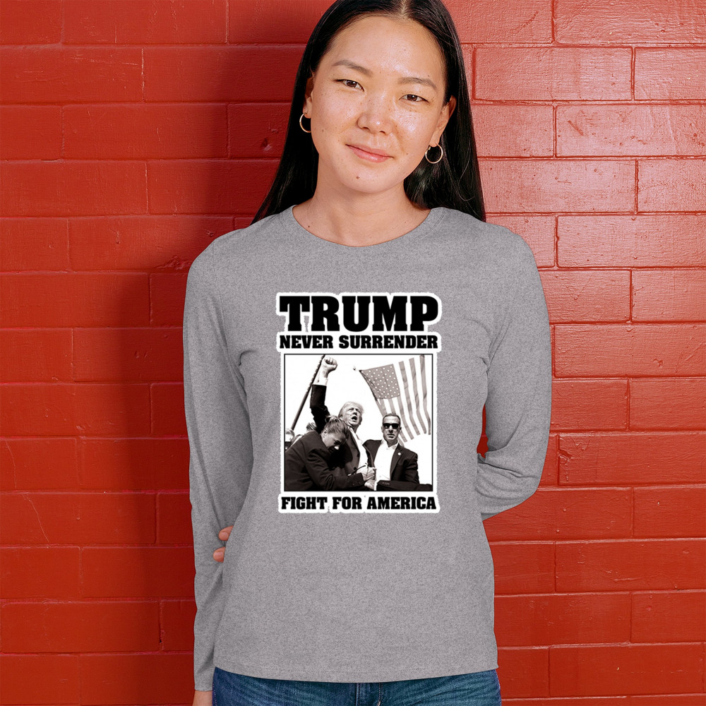 Express your unwavering support with the bold "Trump Never Surrender" design, perfect for rallies and everyday wear. Durable and stylish, show your patriotism proudly.