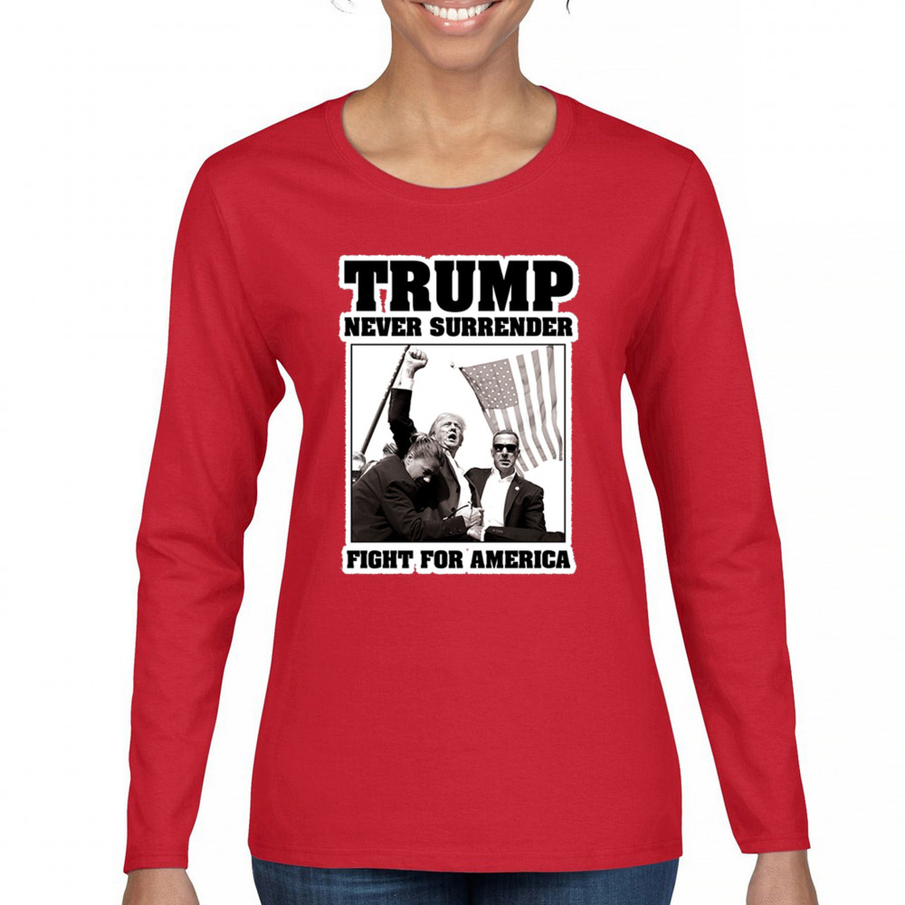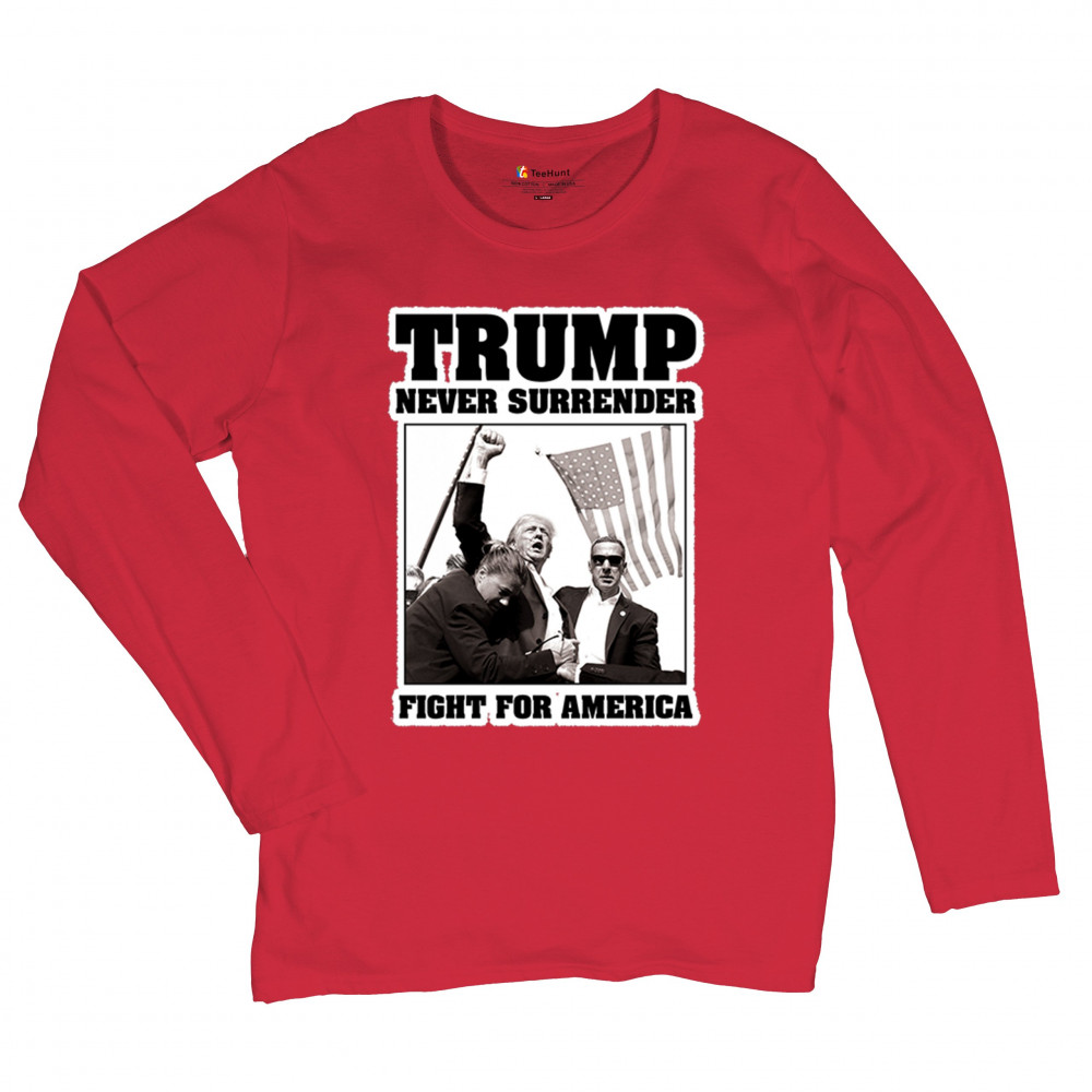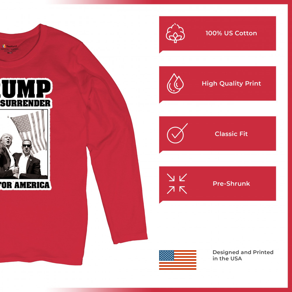 Express your unwavering support with the bold "Trump Never Surrender" design, perfect for rallies and everyday wear. Durable and stylish, show your patriotism proudly.