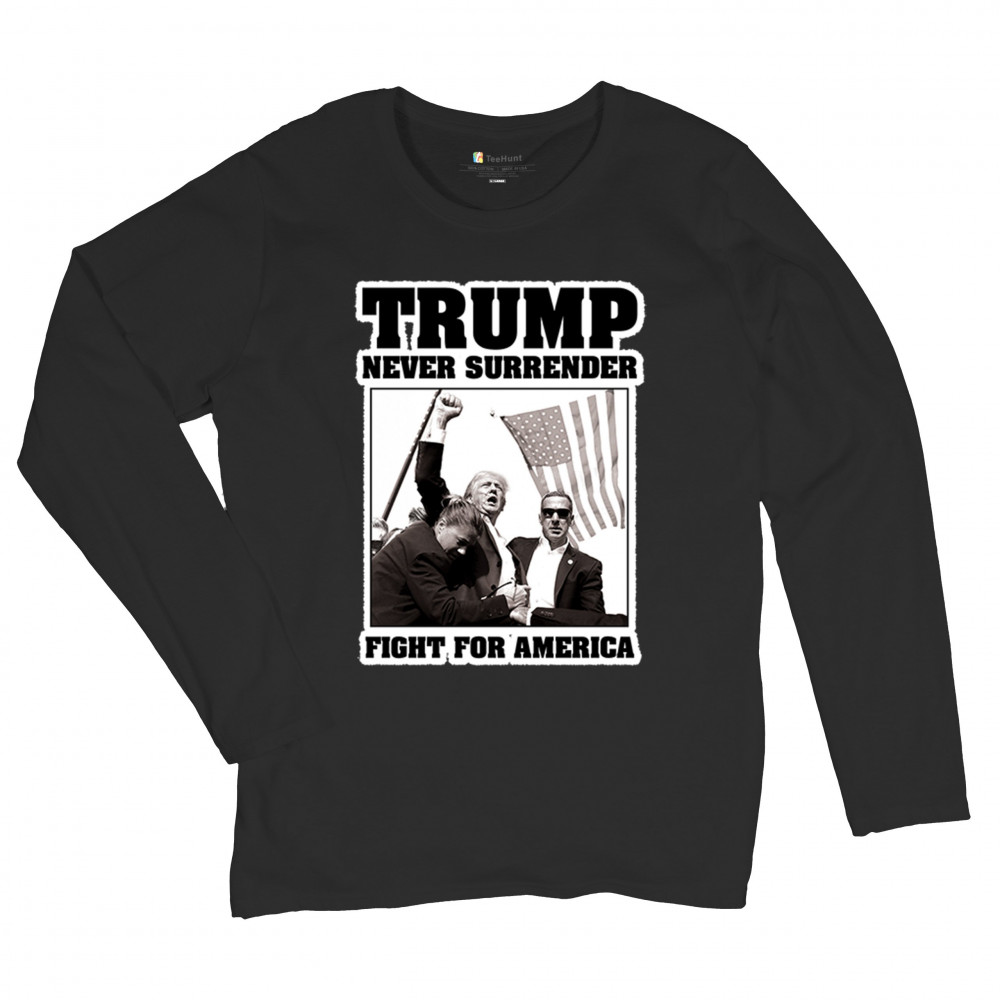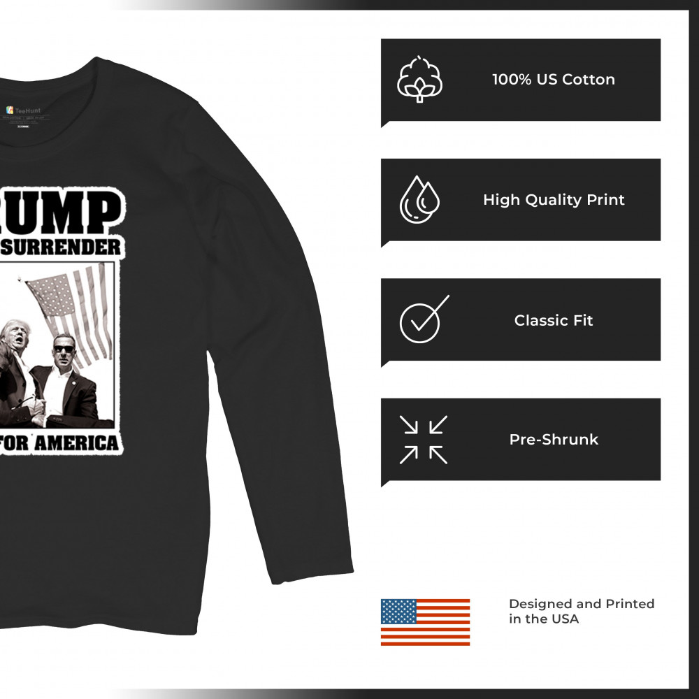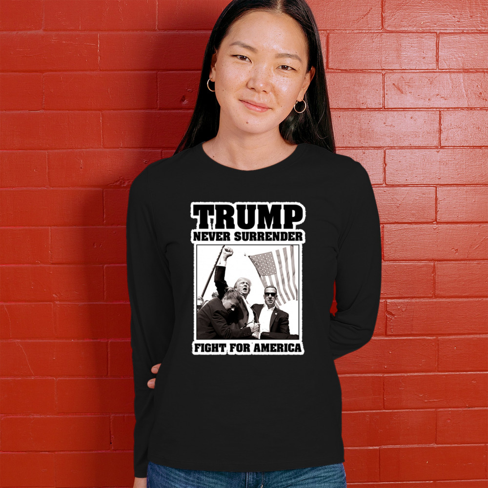 Express your unwavering support with the bold "Trump Never Surrender" design, perfect for rallies and everyday wear. Durable and stylish, show your patriotism proudly.
