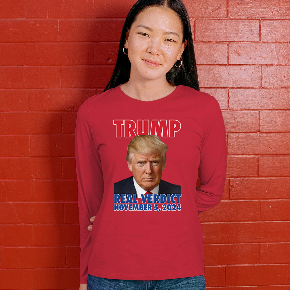 Show your support for Donald Trump with our "Real Verdict November 5, 2024" design. Featuring an image of Trump and bold text, this design is perfect for those who stand by their beliefs. With a reference to the popular "Let's Go Brandon" slogan, it resonates with those who mock Joe Biden. Made from high-quality materials, it ensures comfort and durability. Wear it to rallies, political events, or just out and about to express your support for Trump and the MAGA movement.