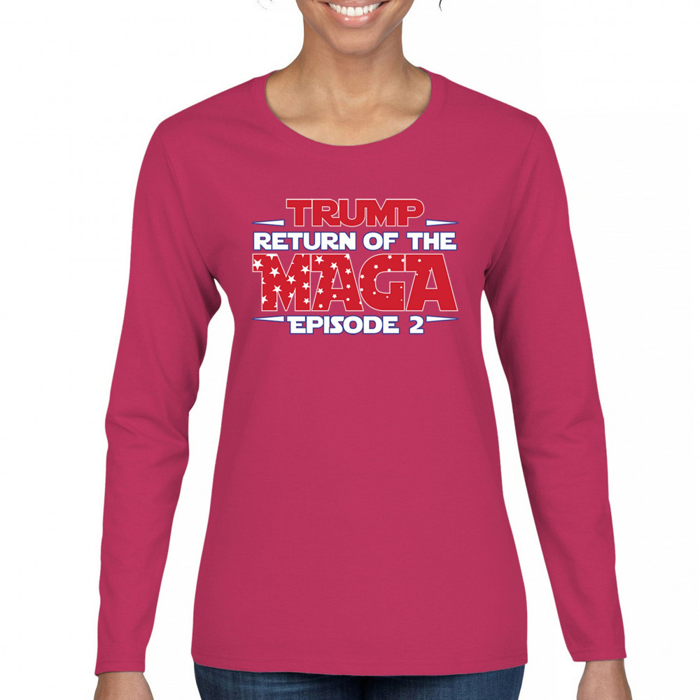 Make a bold statement with the "Return of the MAGA: Episode 2" design, celebrating Donald J. Trump and the Red Wave movement. Perfect for conservatives, Trump supporters, and Republicans who champion America First values, freedom, and the fight for a better future. A must-have for those who never surrender and stand for the people's mandate.